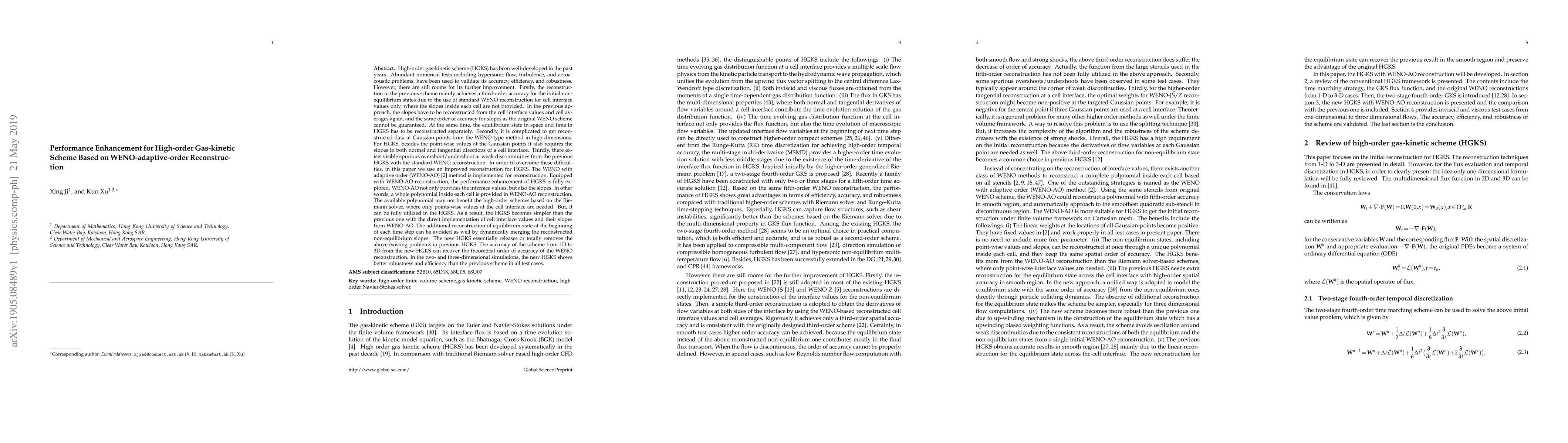A new high-order gas-kinetic scheme (HGKS) improves upon previous versions by using a WENO-adaptive-order reconstruction method, enhancing accuracy, efficiency, and robustness in simulations of hypersonic flows, turbulence, and aeroacoustics.