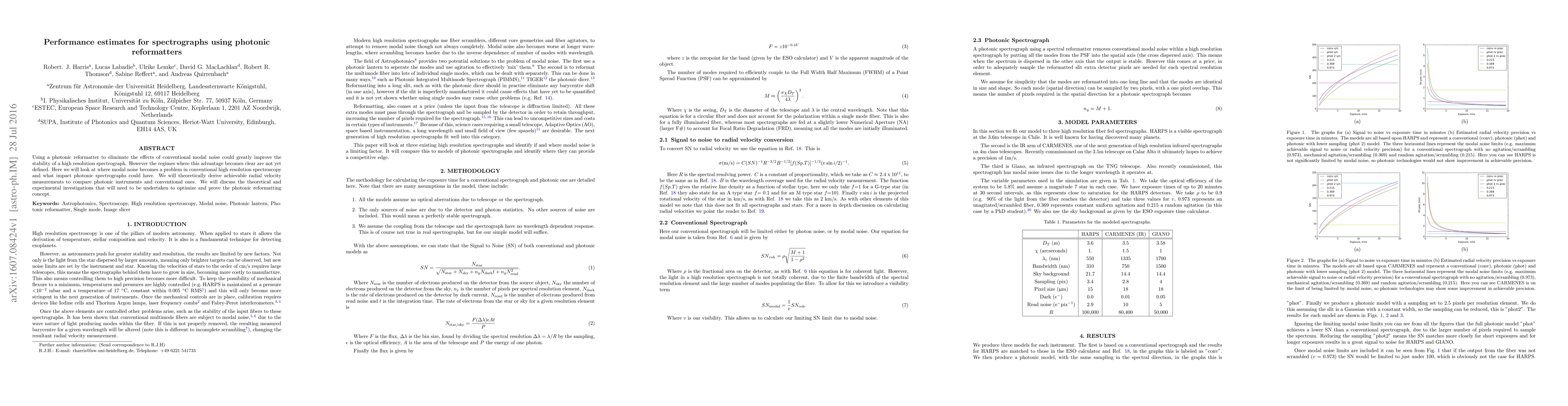 This paper investigates the potential of photonic reformatters to enhance the stability and performance of high-resolution spectrographs by mitigating modal noise. It aims to define the conditions where photonic spectrographs outperform conventional ones and theoretically derives achievable radial velocity measurements for comparison.