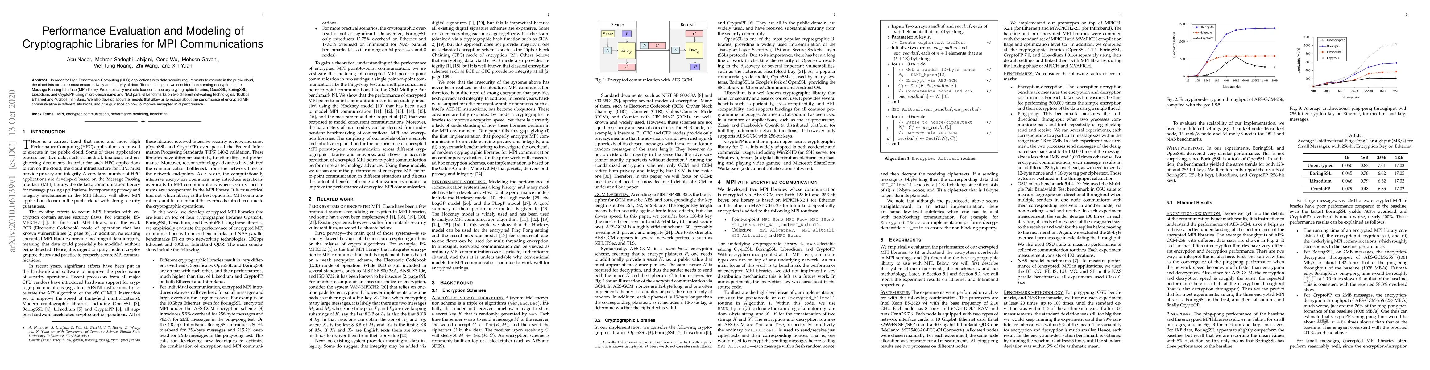 This paper evaluates the performance of four cryptographic libraries—OpenSSL, BoringSSL, Libsodium, and CryptoPP—for secure MPI communications in HPC applications. It develops performance models to guide the optimization of encrypted MPI communication over 10Gbps Ethernet and 40Gbps InfiniBand networks.