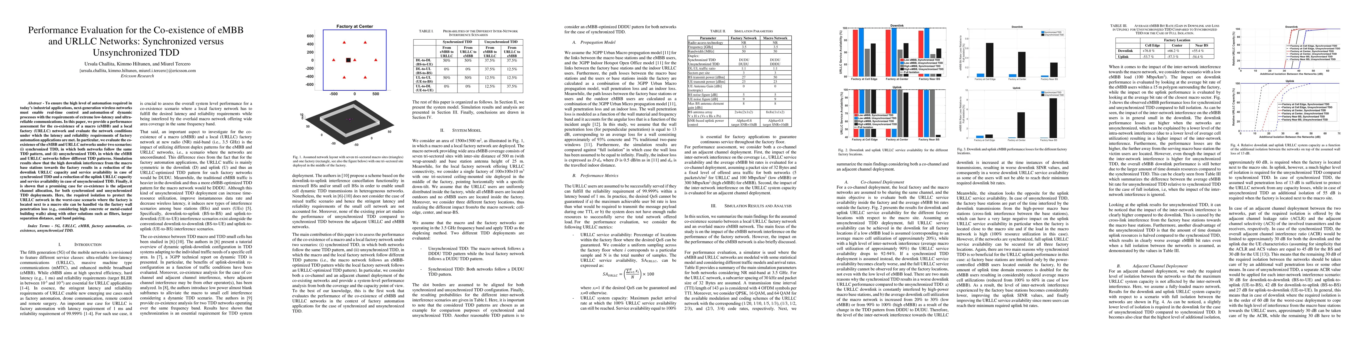 The paper evaluates the co-existence of eMBB and URLLC networks with synchronized and unsynchronized TDD, showing that adjacent channel allocation is a promising case for co-existence.