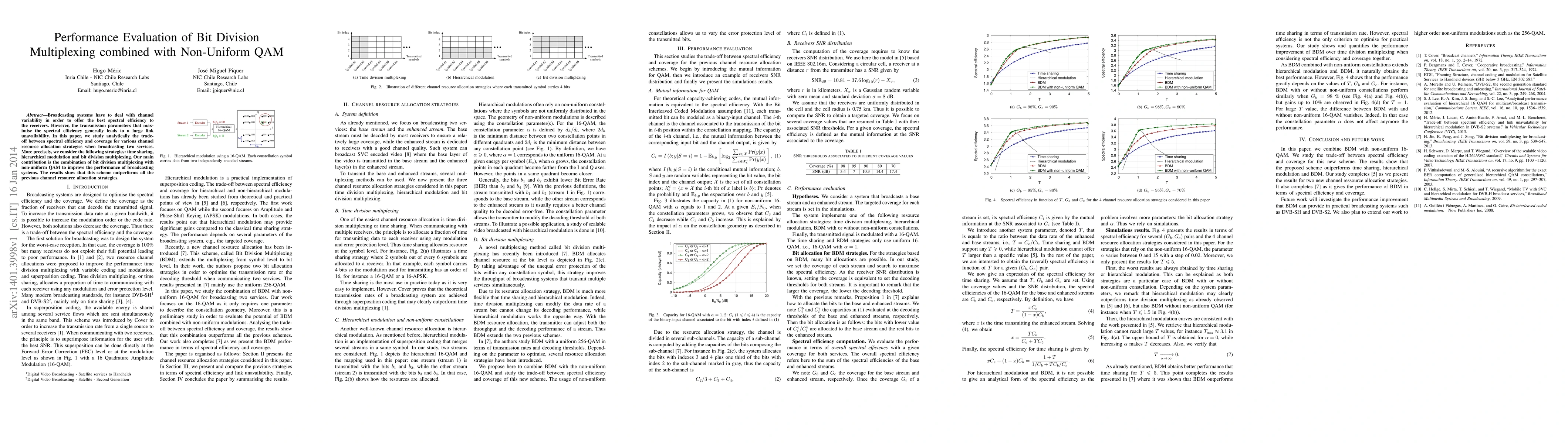 This paper evaluates the performance of bit division multiplexing combined with non-uniform QAM to enhance spectral efficiency in broadcasting systems. The study finds that this approach outperforms traditional strategies like time sharing and hierarchical modulation, achieving better trade-offs between spectral efficiency and coverage.