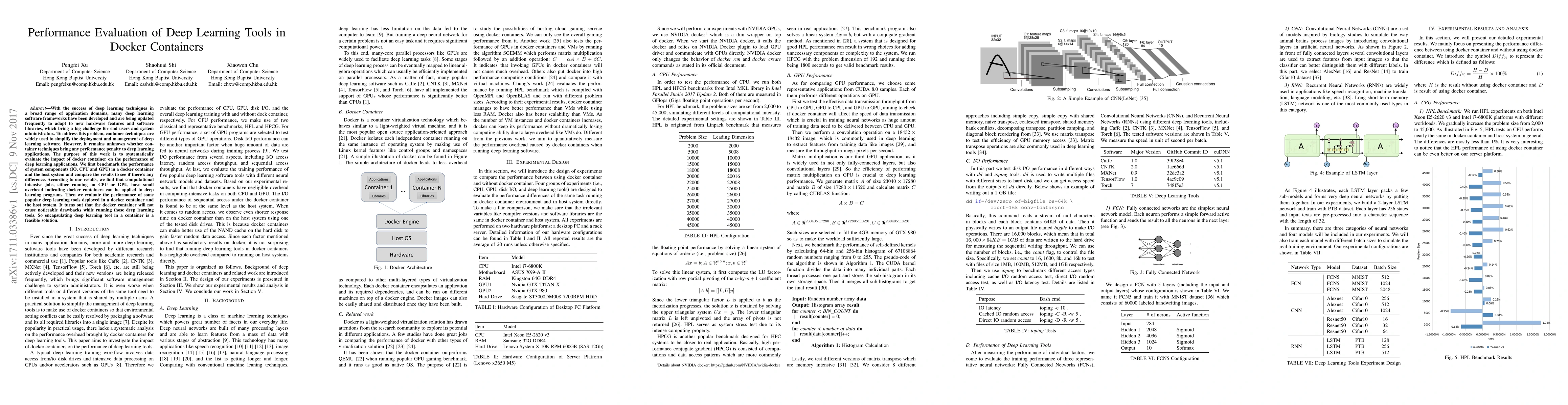 This paper evaluates the performance impact of running deep learning tools in Docker containers compared to the host system. The study finds minimal overhead for computationally intensive tasks, indicating that Docker containers can be effectively used for deploying deep learning applications without significant performance drawbacks.