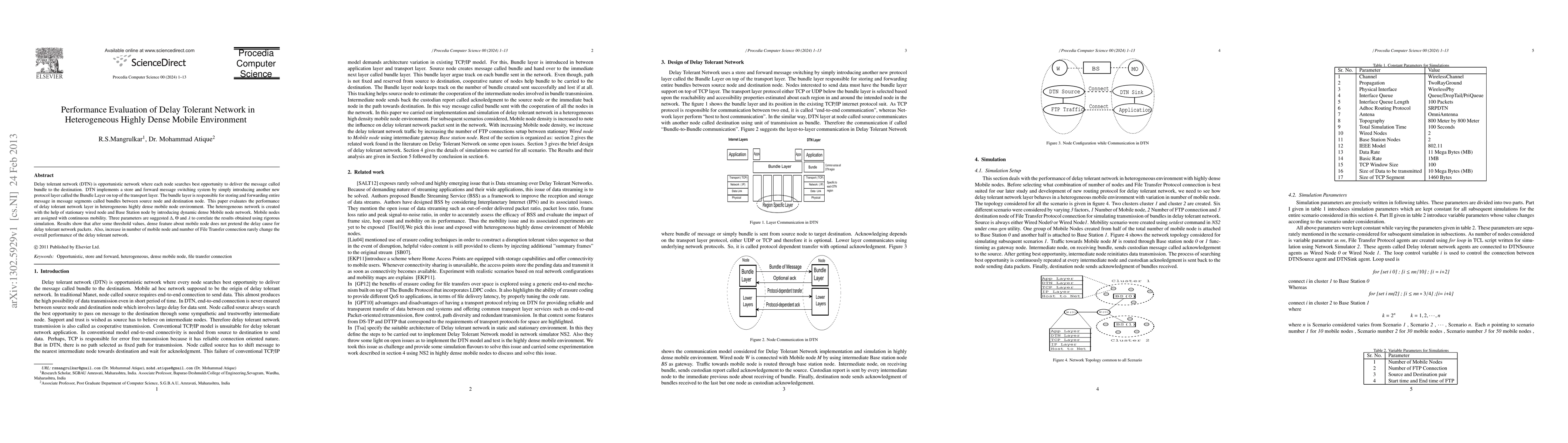This paper evaluates the performance of a Delay Tolerant Network (DTN) in a heterogeneous, highly dense mobile environment, finding that beyond certain thresholds, the dense mobility of nodes does not significantly increase delays, and increased mobile nodes and file transfer connections have minimal impact on overall DTN performance.