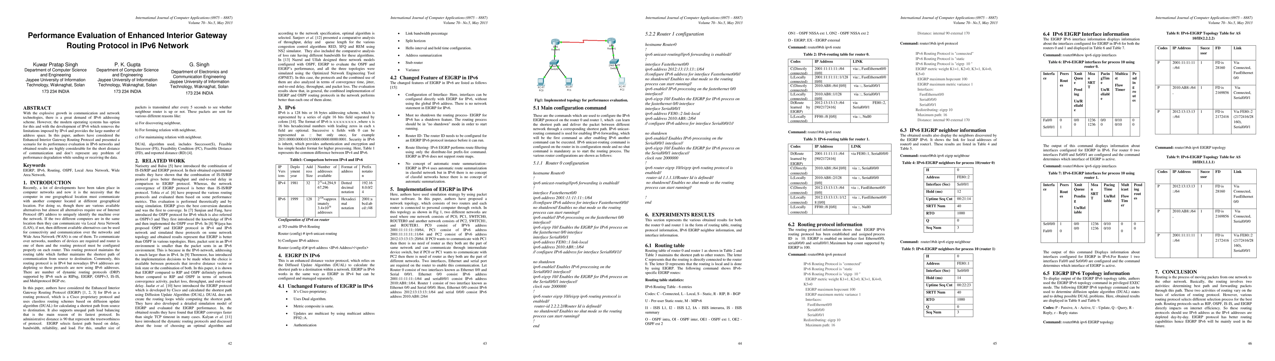This paper evaluates the performance of Enhanced Interior Gateway Routing Protocol (EIGRP) in IPv6 networks, finding that it effectively handles short-distance communication without performance degradation, highlighting its suitability for the expanded address space of IPv6.