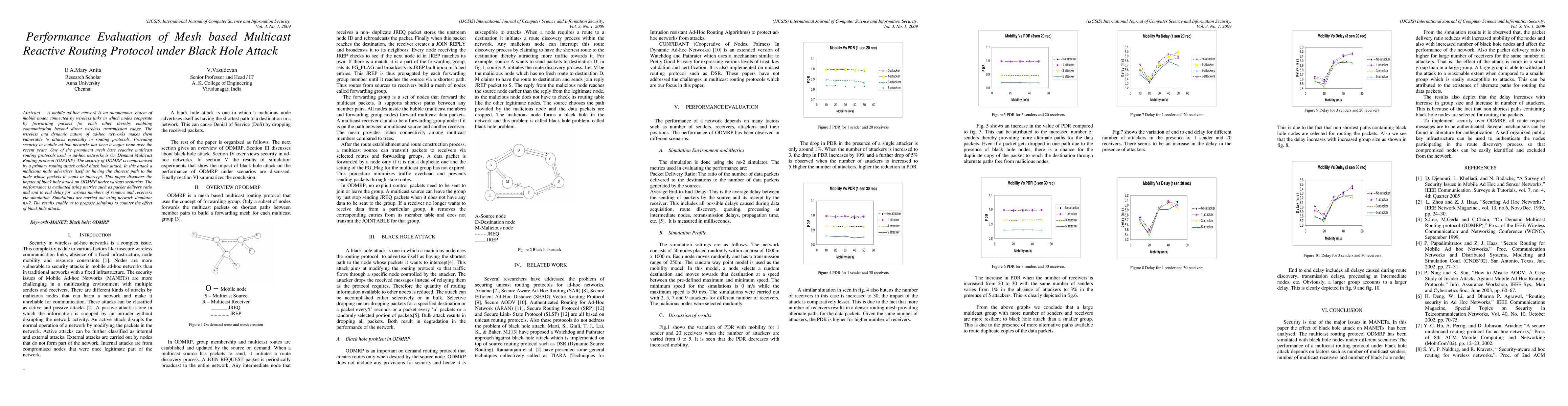 A mobile ad-hoc network is an autonomous system of mobile nodes connected by wireless links in which nodes cooperate by forwarding packets for each other thereby enabling communication beyond direct wireless transmission range. The wireless and dynamic nature of ad-hoc networks makes them vulnerable to attacks especially in routing protocols. Providing security in mobile ad-hoc networks has been a major issue over the recent years. One of the prominent mesh base reactive multicast routing protocols used in ad-hoc networks is On Demand Multicast Routing protocol (ODMRP). The security of ODMRP is compromised by a primary routing attack called black hole attack. In this attack a malicious node advertises itself as having the shortest path to the node whose packets it wants to intercept. This paper discusses the impact of black hole attack on ODMRP under various scenarios. The performance is evaluated using metrics such as packet delivery ratio and end to end delay for various numbers of senders and receivers via simulation. Simulations are carried out using network simulator ns-2. The results enable us to propose solutions to counter the effect of black hole attack.