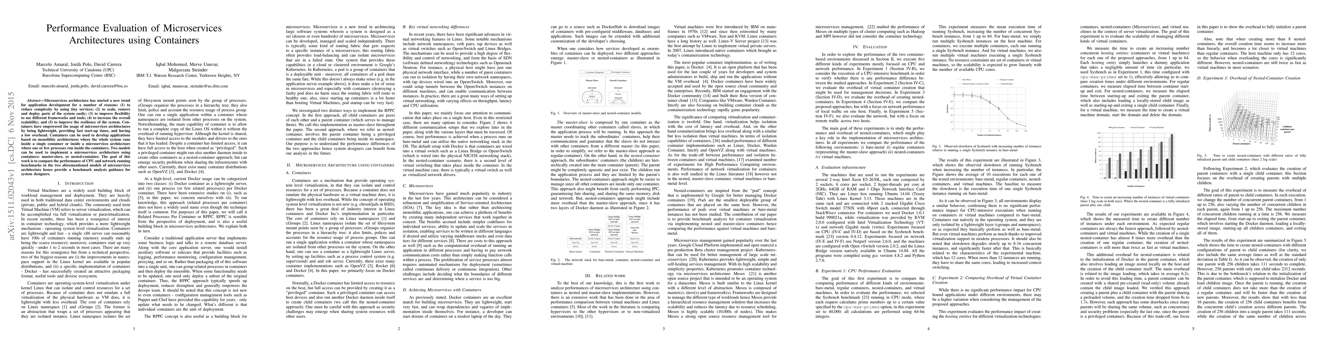 This paper evaluates the performance of microservices architectures implemented using container models, specifically comparing master-slave and nested-container approaches through CPU and network benchmarks. The aim is to provide system designers with performance insights for choosing the optimal container model for microservices.