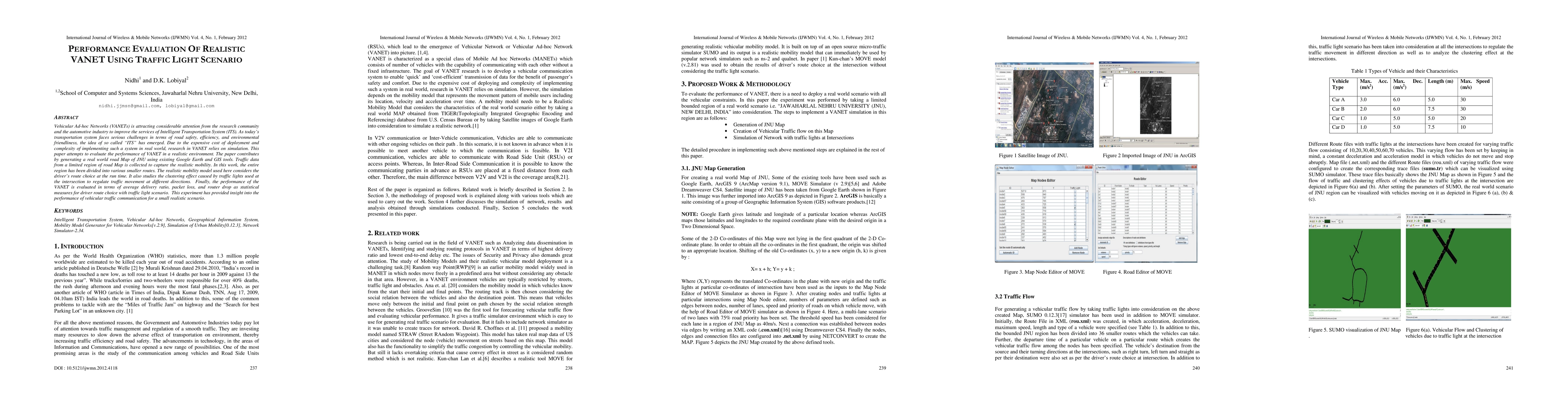 This paper evaluates the performance of Vehicular Ad-hoc Networks (VANET) in a realistic traffic light scenario using a real-world road map of JNU. It measures VANET performance in terms of delivery ratio, packet loss, and router drop, providing insights into vehicular communication efficiency.
