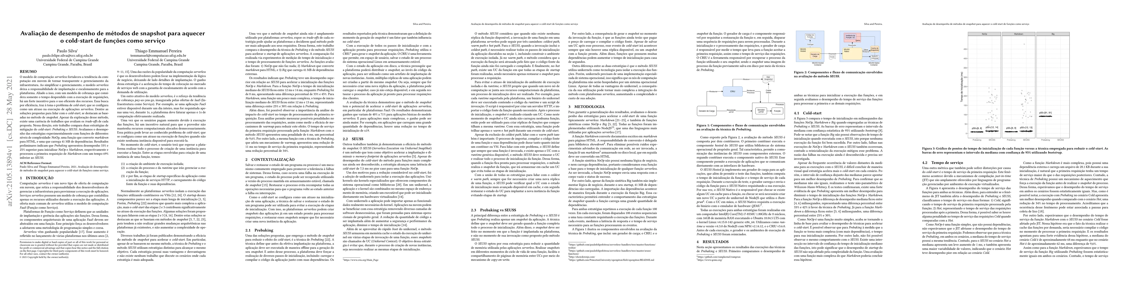 The serverless computing model strengthens the cloud computing tendency to abstract resource management. Serverless platforms are responsible for deploying and scaling the developer's applications. Serverless also incorporated the pay-as-you-go billing model, which only considers the time spent processing client requests. Such a decision created a natural incentive for improving the platform's efficient resource usage. This search for efficiency can lead to the cold start problem, which represents a delay to execute serverless applications. Among the solutions proposed to deal with the cold start, those based on the snapshot method stand out. Despite the rich exploration of the technique, there is a lack of research that evaluates the solution's trade-offs. In this direction, this work compares two solutions to mitigate the cold start: Prebaking and SEUSS. We analyzed the solution's performance with functions of different levels of complexity: NoOp, a function that renders Markdown to HTML, and a function that loads 41 MB of dependencies. Preliminary results indicated that Prebaking showed a 33% and 25% superior performance to startup the NoOp and Markdown functions, respectively. Further analysis also revealed that Prebaking's warmup mechanism reduced the Markdown first request processing time by 69%.