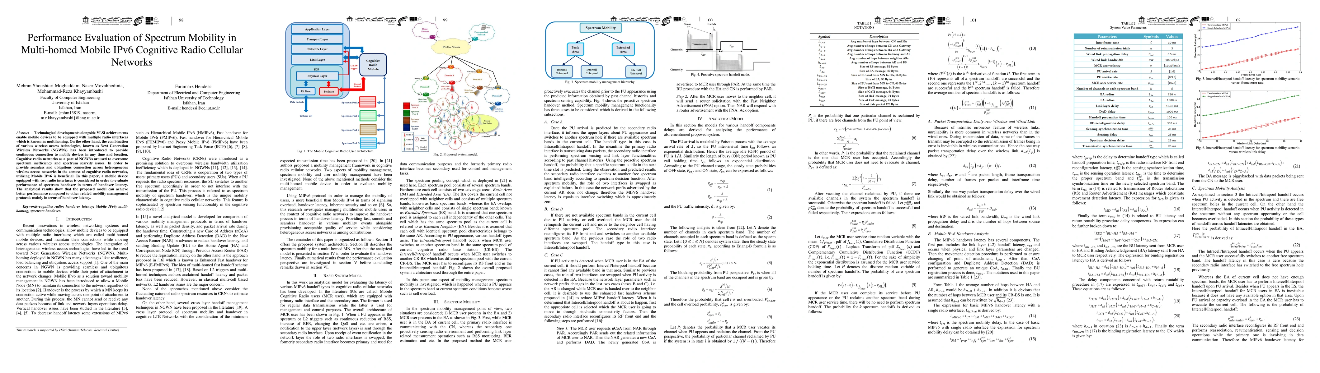 This paper evaluates the performance of spectrum mobility in multi-homed Mobile IPv6 cognitive radio cellular networks, focusing on handover latency. The proposed model demonstrates superior performance compared to other mobility management protocols, particularly in reducing handover latency.
