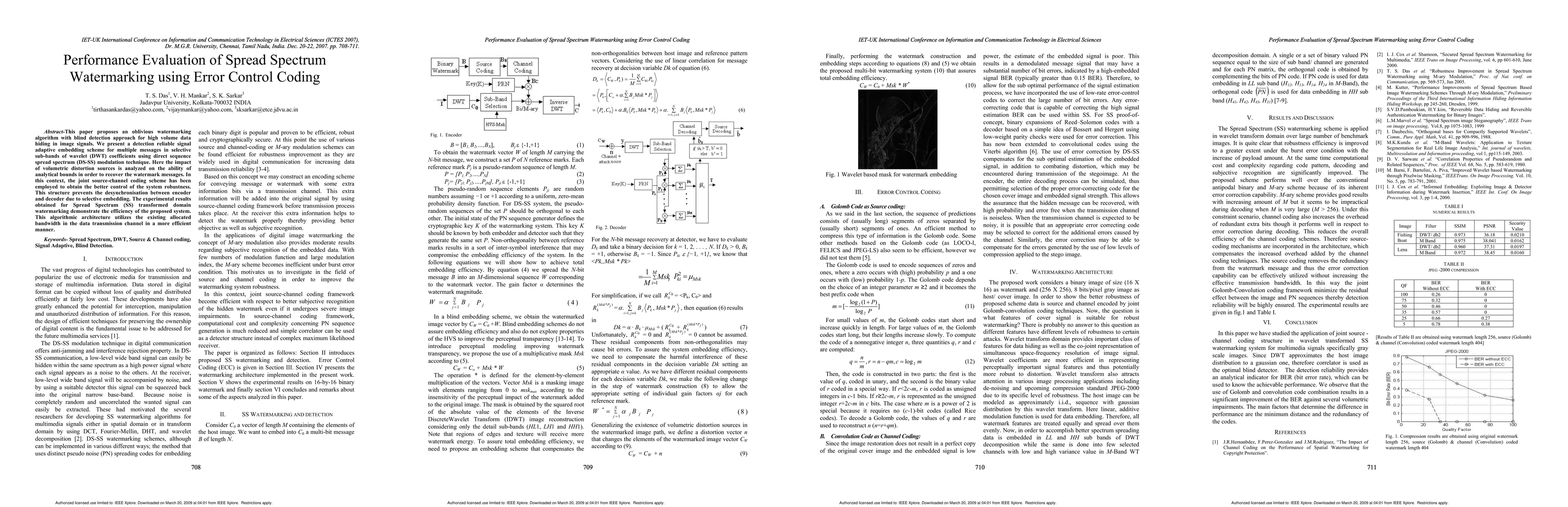 This paper proposes an oblivious watermarking algorithm with blind detection approach for high volume data hiding in image signals. We present a detection reliable signal adaptive embedding scheme for multiple messages in selective sub-bands of wavelet (DWT) coefficients using direct sequence spread spectrum (DS-SS) modulation technique. Here the impact of volumetric distortion sources is analyzed on the ability of analytical bounds in order to recover the watermark messages. In this context, the joint source-channel coding scheme has been employed to obtain the better control of the system robustness. This structure prevents the desynchronisation between encoder and decoder due to selective embedding. The experimental results obtained for Spread Spectrum (SS) transformed domain watermarking demonstrate the efficiency of the proposed system. This algorithmic architecture utilizes the existing allocated bandwidth in the data transmission channel in a more efficient manner.