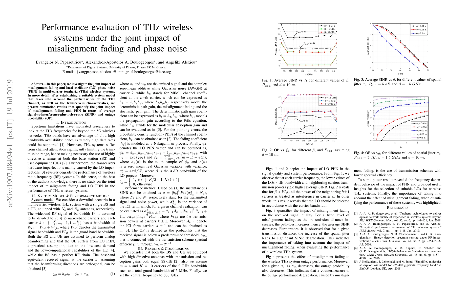 This paper evaluates the performance of THz wireless systems considering misalignment fading and local oscillator phase noise, presenting simulation results that quantify their joint impact on average SINR and outage probability. The study establishes a detailed system model incorporating THz channel and transceiver characteristics.