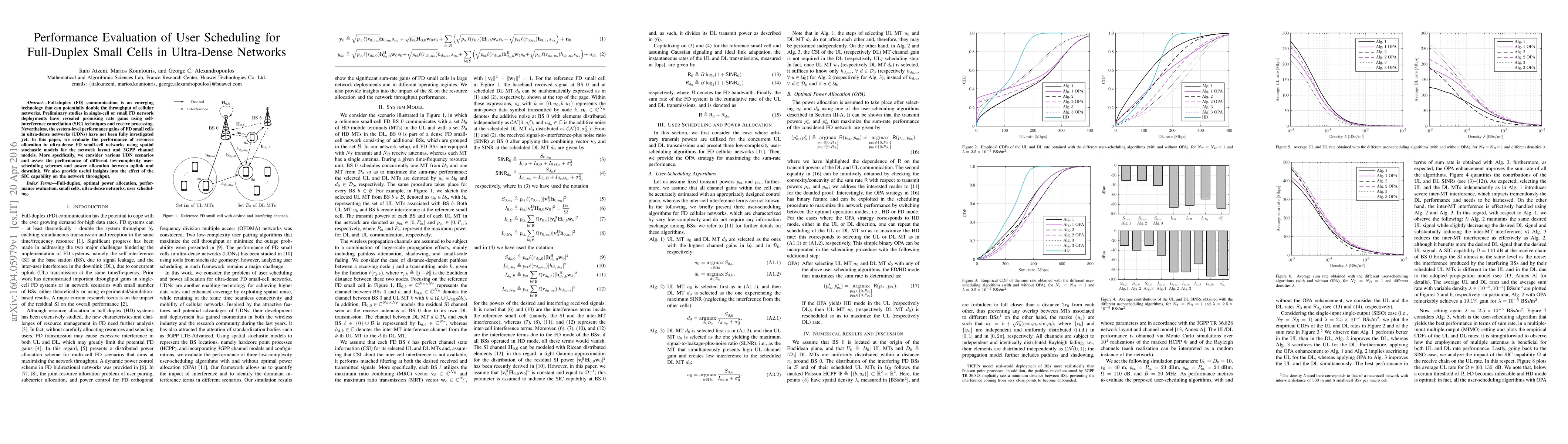 This paper evaluates resource allocation strategies for full-duplex small cells in ultra-dense networks, focusing on user scheduling and power allocation. It assesses the performance of low-complexity scheduling schemes and provides insights into the impact of self-interference cancellation on network throughput.
