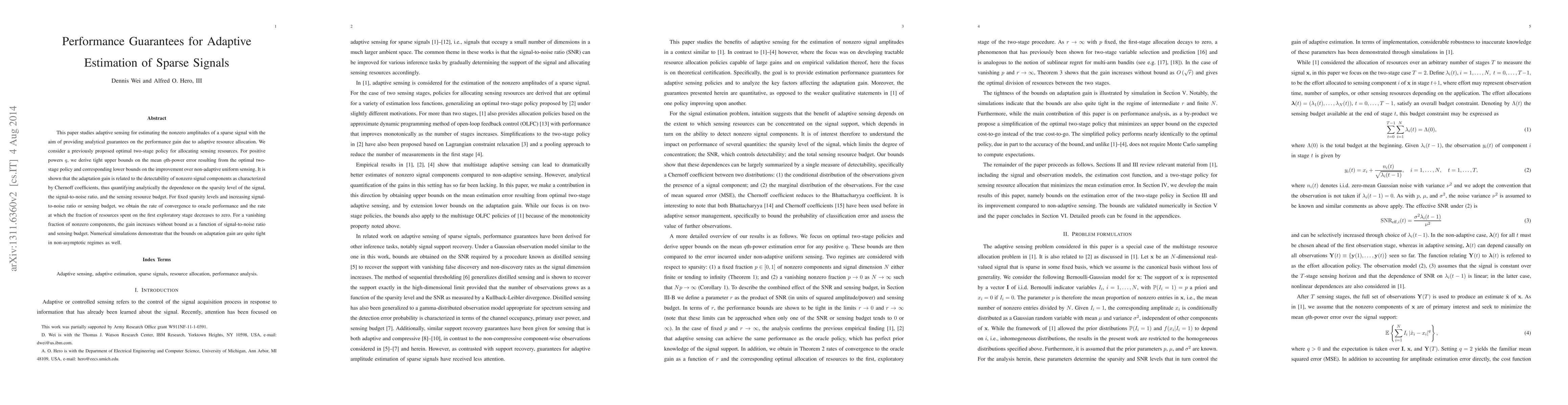This paper provides analytical guarantees on the performance gain of adaptive sensing for estimating sparse signals, showing that adaptation improves detection accuracy with increasing signal-to-noise ratio or sensing budget.