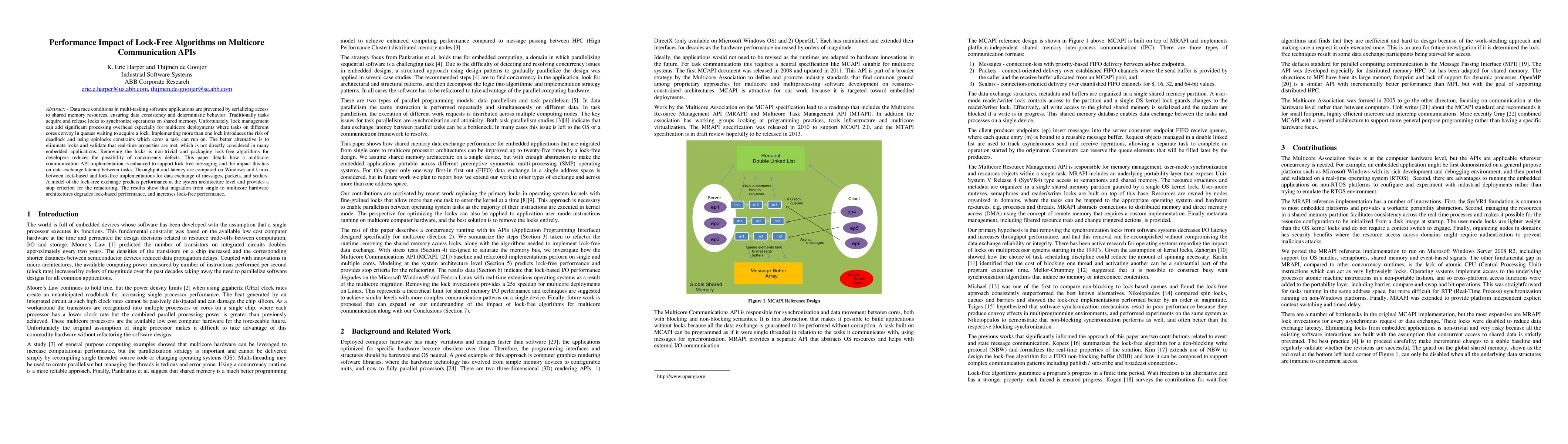 This paper investigates the performance impact of lock-free algorithms on multicore communication APIs, demonstrating that lock-free messaging reduces data exchange latency and improves throughput compared to traditional lock-based methods, especially in multicore environments. The study provides a predictive model for lock-free performance and shows significant benefits in migrating to multicore architectures.