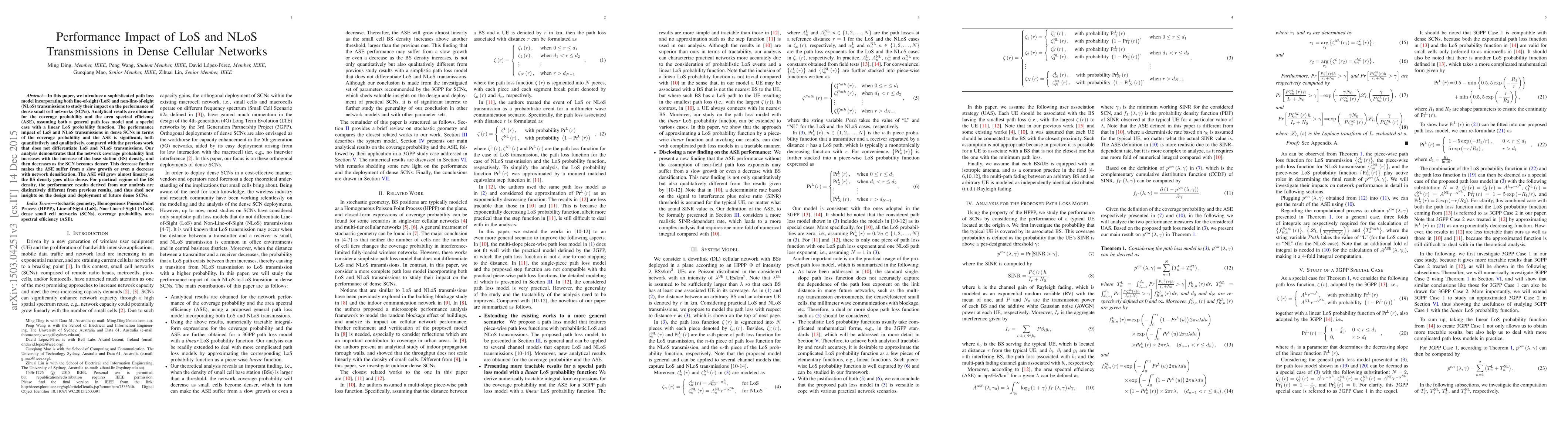 This paper develops a path loss model for dense small cell networks considering both LoS and NLoS transmissions, showing significant performance impacts on coverage probability and area spectral efficiency. The analysis reveals that while network coverage initially improves with base station density, it eventually declines, leading to a slow growth or even decrease in spectral efficiency as the network becomes denser.