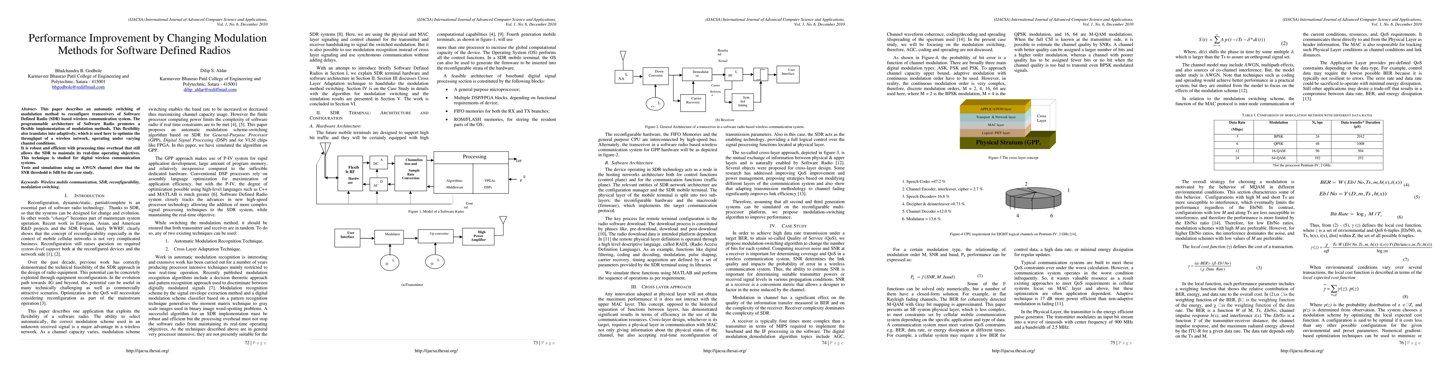 This paper proposes an automatic modulation method switching technique for Software Defined Radios to optimize throughput under varying channel conditions, demonstrating a 5dB SNR threshold in AWGN channel tests while maintaining real-time performance.