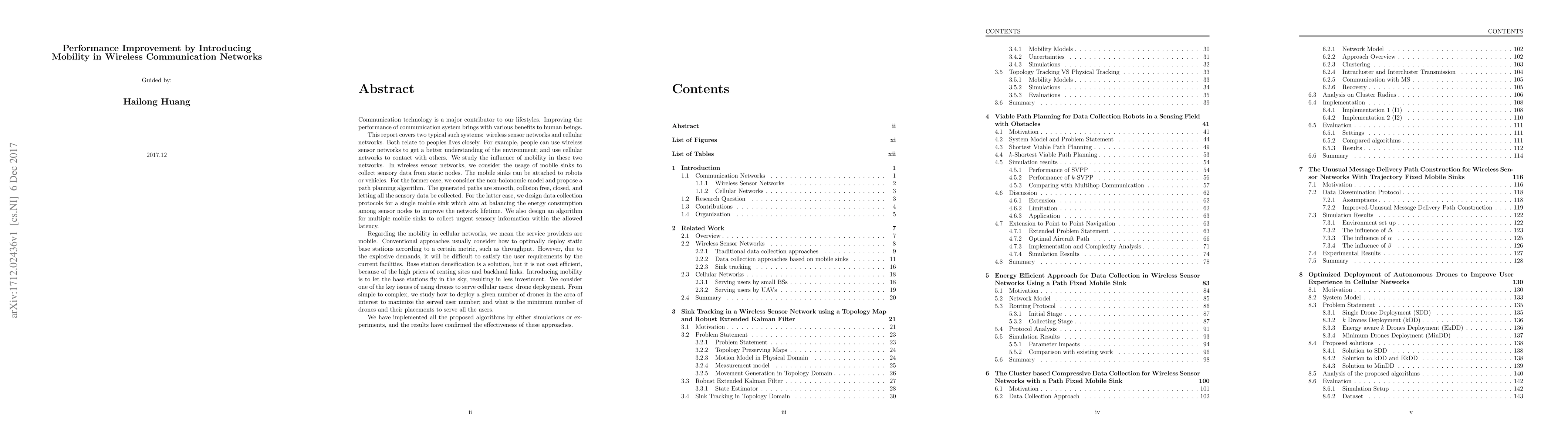 Communication technology is a major contributor to our lifestyles. Improving the performance of communication system brings with various benefits to human beings. This report covers two typical such systems: wireless sensor networks and cellular networks. We study the influence of mobility in these networks. In wireless sensor networks, we consider the usage of mobile sinks to collect sensory data from static nodes. For the latter case, we design data collection protocols for a single mobile sink which aim at balancing the energy consumption among sensor nodes to improve the network lifetime. We also design an algorithm for multiple mobile sinks to collect urgent sensory information within the allowed latency. Regarding the mobility in cellular networks, we mean the service providers are mobile. Conventional approaches usually consider how to optimally deploy static base stations according to a certain metric, such as throughput. Base station densification is a solution, but it is not cost efficient. Introducing mobility is to let the base stations fly in the sky, resulting in less investment. We consider one of the key issues of using drones to serve cellular users: drone deployment. We have implemented all the proposed algorithms by either simulations or experiments, and the results have confirmed the effectiveness of these approaches.