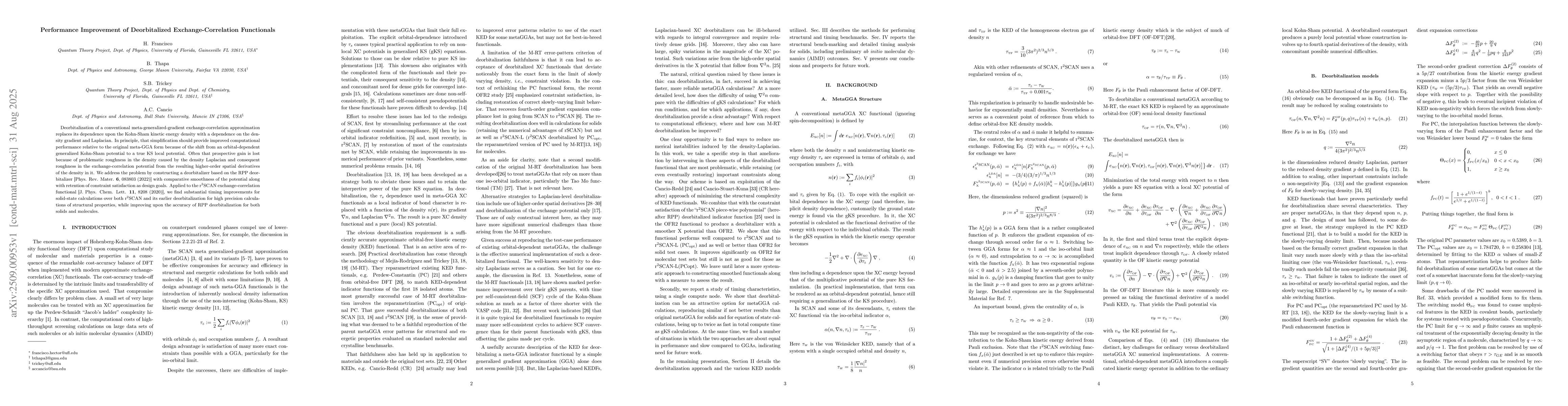 Deorbitalization of a conventional meta-generalized-gradient exchange-correlation approximation replaces its dependence upon the Kohn-Sham kinetic energy density with a dependence on the density gradient and Laplacian. In principle, that simplification should provide improved computational performance relative to the original meta-GGA form because of the shift from an orbital-dependent generalized Kohn-Sham potential to a true KS local potential. Often that prospective gain is lost because of problematic roughness in the density caused by the density Laplacian and consequent roughness in the exchange-correlation potential from the resulting higher-order spatial derivatives of the density in it. We address the problem by constructing a deorbitalizer based on the RPP deorbitalizer [Phys. Rev. Mater. 6, 083803 (2022)] with comparative smoothness of the potential along with retention of constraint satisfaction as design goals. Applied to the r^2SCAN exchange-correlation functional [J. Phys. Chem. Lett. 11, 8208 (2020)], we find substantial timing improvements for solid-state calculations over both r^2SCAN and its earlier deorbitalization for high precision calculations of structural properties, while improving upon the accuracy of RPP deorbitalization for both solids and molecules.