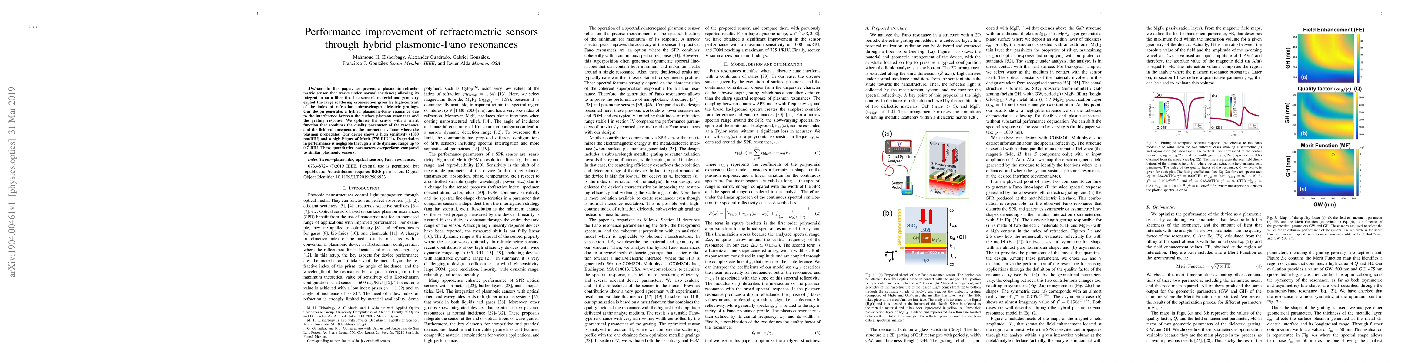 The paper introduces a novel plasmonic sensor design that leverages hybrid plasmonic-Fano resonances, optimized for high sensitivity and FOM, with a merit function that combines resonance quality and field enhancement.