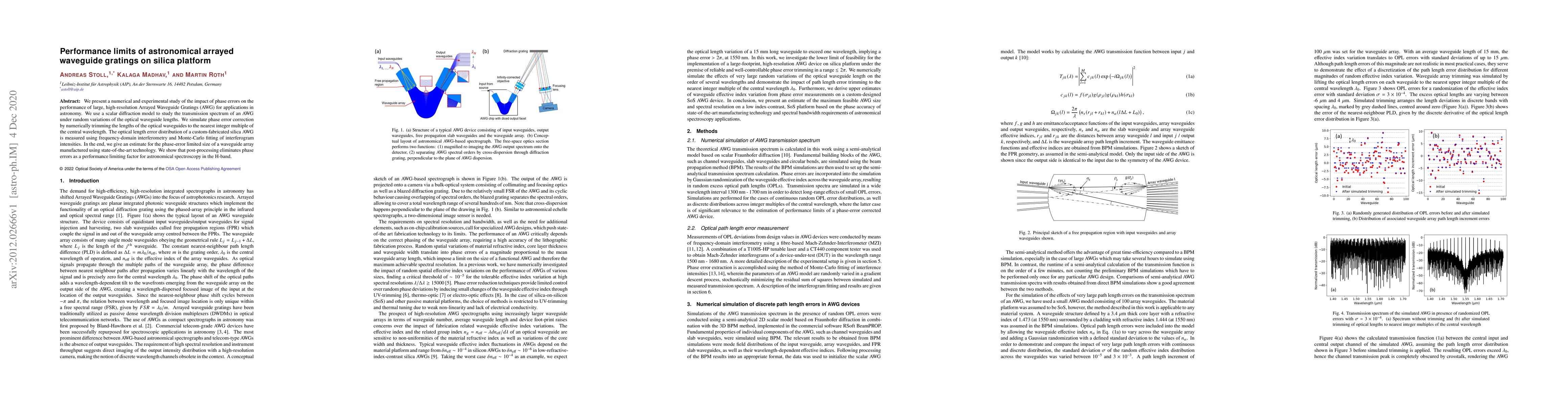 Researchers investigate how phase errors affect performance of astronomical Arrayed Waveguide Gratings (AWGs) and find that post-processing can eliminate these errors as a limiting factor for spectroscopy in the H-band.