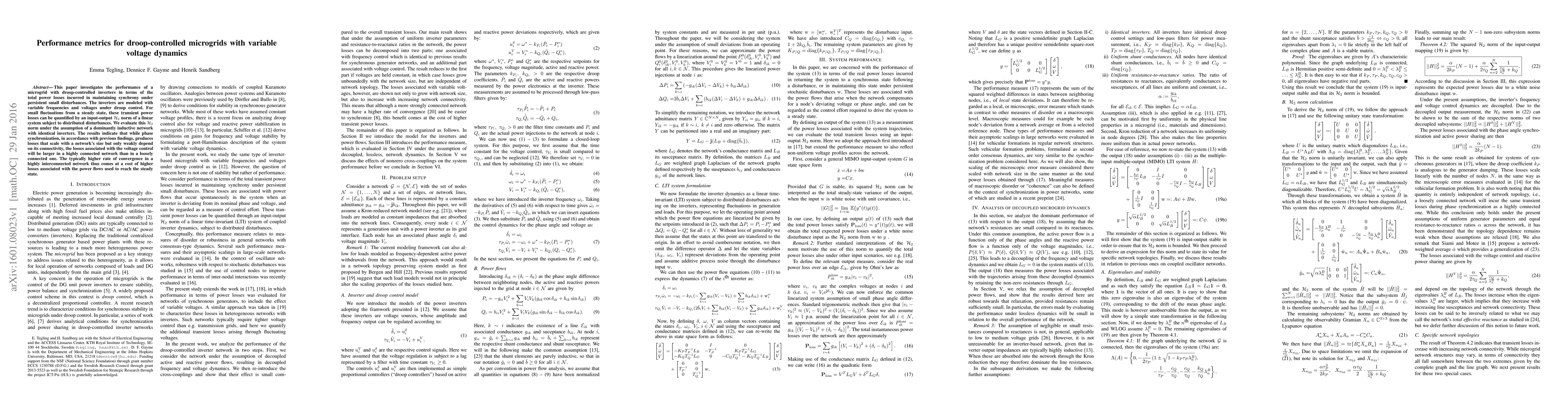 A microgrid with droop-controlled inverters experiences power losses during small disturbances, which scale with network size but depend weakly on connectivity. Highly connected networks incur higher losses for faster convergence.