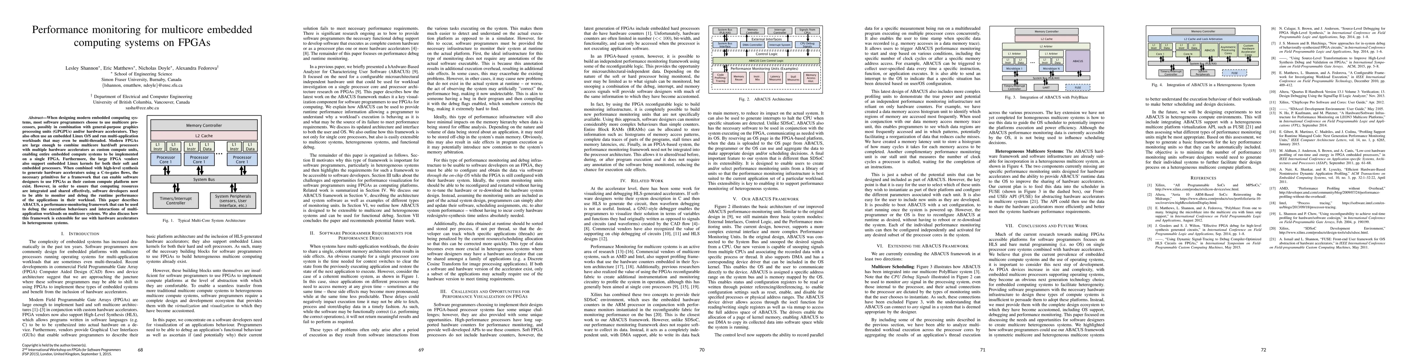 This paper introduces ABACUS, a performance-monitoring framework designed to debug and analyze the runtime behaviors of multi-application workloads on multicore embedded systems implemented on FPGAs. It highlights the framework's extensibility for use with hardware accelerators in heterogeneous computing environments.