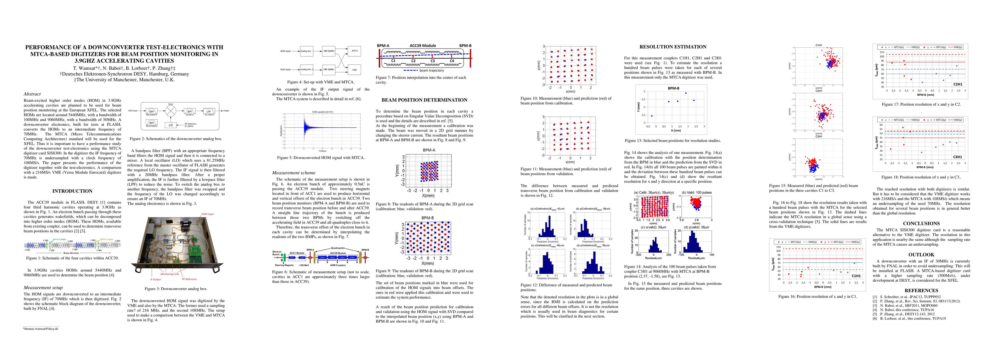 Beam-excited higher order modes (HOM) in 3.9GHz accelerating cavities are planned to be used for beam position monitoring at the European XFEL. The selected HOMs are located around 5440MHz, with a bandwidth of 100MHz and 9060MHz, with a bandwidth of 50MHz. A downconverter electronics, built for tests at FLASH, converts the HOMs to an intermediate frequency of 70MHz. The MTCA (Micro Telecommunications Computing Architecture) standard will be used for the XFEL. Thus it is important to have a performance study of the downconverter test-electronics using the MTCA digitizer card SIS8300. In the digitizer the IF frequency of 70MHz is undersampled with a clock frequency of 108MS/s. The paper presents the performance of the digitizer together with the test-electronics. A comparison with a 216MS/s VME (Versa Module Eurocard) digitizer is made.