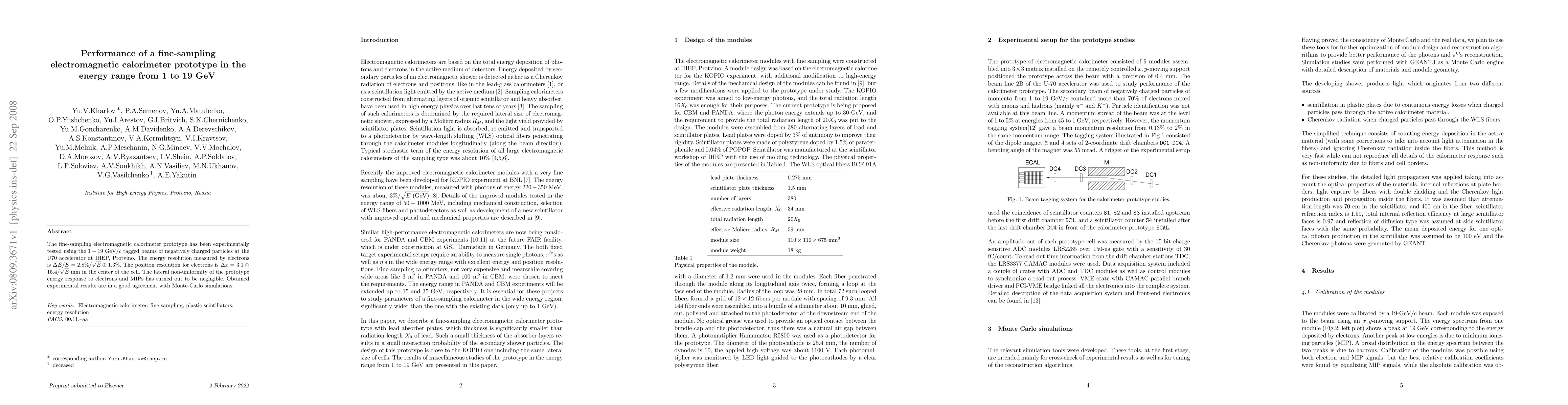 The fine-sampling electromagnetic calorimeter prototype demonstrated excellent performance in the 1-19 GeV energy range, achieving an energy resolution of ΔE/E=2.8%/√E + 1.3% and a position resolution of Δx=3.1 + 15.4/√E mm. Experimental results align well with Monte-Carlo simulations.