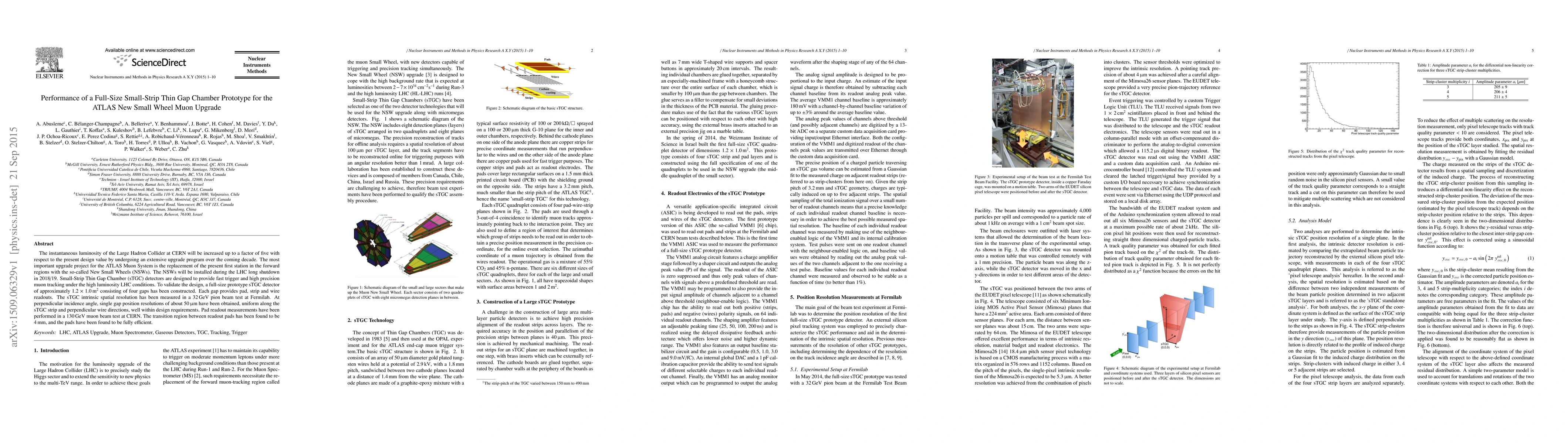 The instantaneous luminosity of the Large Hadron Collider at CERN will be increased up to a factor of five with respect to the present design value by undergoing an extensive upgrade program over the coming decade. The most important upgrade project for the ATLAS Muon System is the replacement of the present first station in the forward regions with the so-called New Small Wheels (NSWs). The NSWs will be installed during the LHC long shutdown in 2018/19. Small-Strip Thin Gap Chamber (sTGC) detectors are designed to provide fast trigger and high precision muon tracking under the high luminosity LHC conditions. To validate the design, a full-size prototype sTGC detector of approximately 1.2 $\times$ $1.0\, \mathrm{m}^2$ consisting of four gaps has been constructed. Each gap provides pad, strip and wire readouts. The sTGC intrinsic spatial resolution has been measured in a $32\, \mathrm{GeV}$ pion beam test at Fermilab. At perpendicular incidence angle, single gap position resolutions of about $50\,\mathrm{\mu m}$ have been obtained, uniform along the sTGC strip and perpendicular wire directions, well within design requirements. Pad readout measurements have been performed in a $130\, \mathrm{GeV}$ muon beam test at CERN. The transition region between readout pads has been found to be $4\,\mathrm{mm}$, and the pads have been found to be fully efficient.