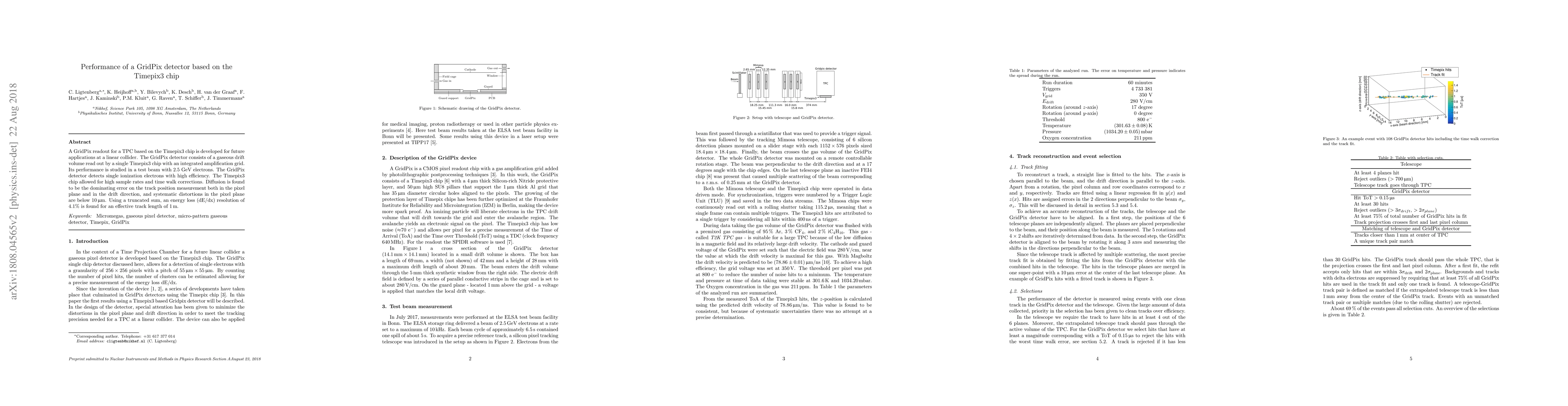 The GridPix detector, utilizing a Timepix3 chip, demonstrates high efficiency in detecting single ionization electrons and supports high sample rates and time walk corrections. Despite diffusion being the main error source in track position measurement, systematic distortions remain below 10 $\mu$m, and an energy loss resolution of 4.1% is achieved for a 1 m track length.