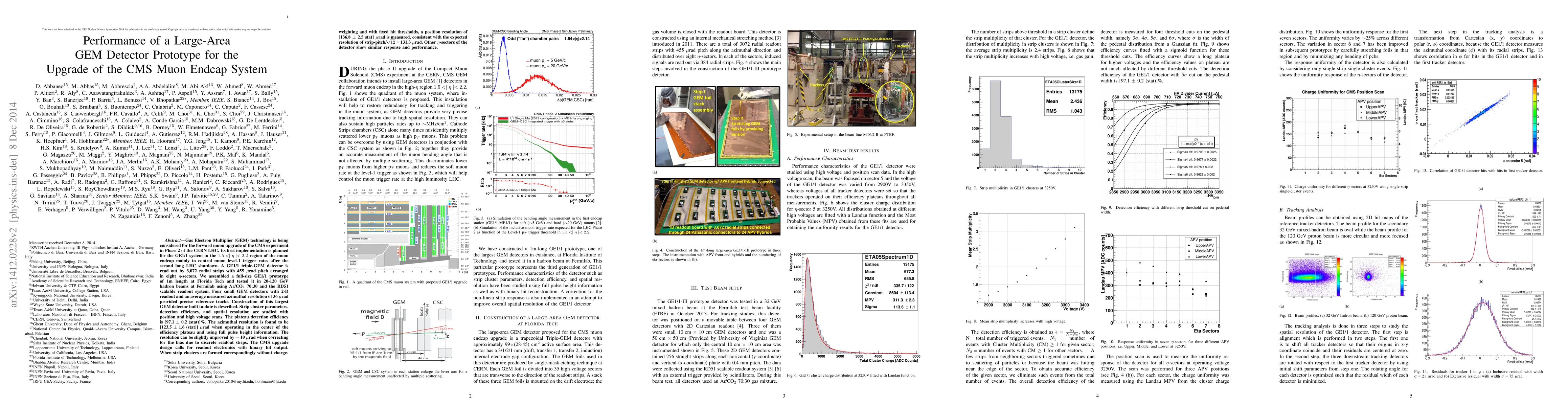 This paper details the construction and performance testing of a large-area GEM detector prototype for the CMS muon endcap upgrade. The prototype, with 1m length and 3,072 strips, demonstrated a detection efficiency of 97.1% and an azimuthal resolution of 123.5 μrad, which can be improved to 136.8 μrad under binary readout conditions.