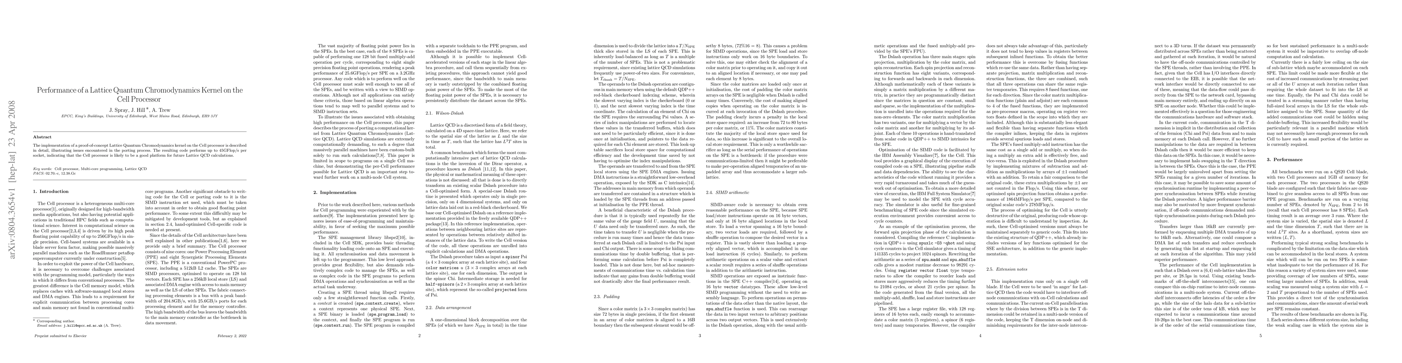 This paper details the implementation of a Lattice Quantum Chromodynamics kernel on the Cell processor, achieving up to 45GFlop/s per socket, demonstrating the Cell's potential as a robust platform for future Lattice QCD calculations.