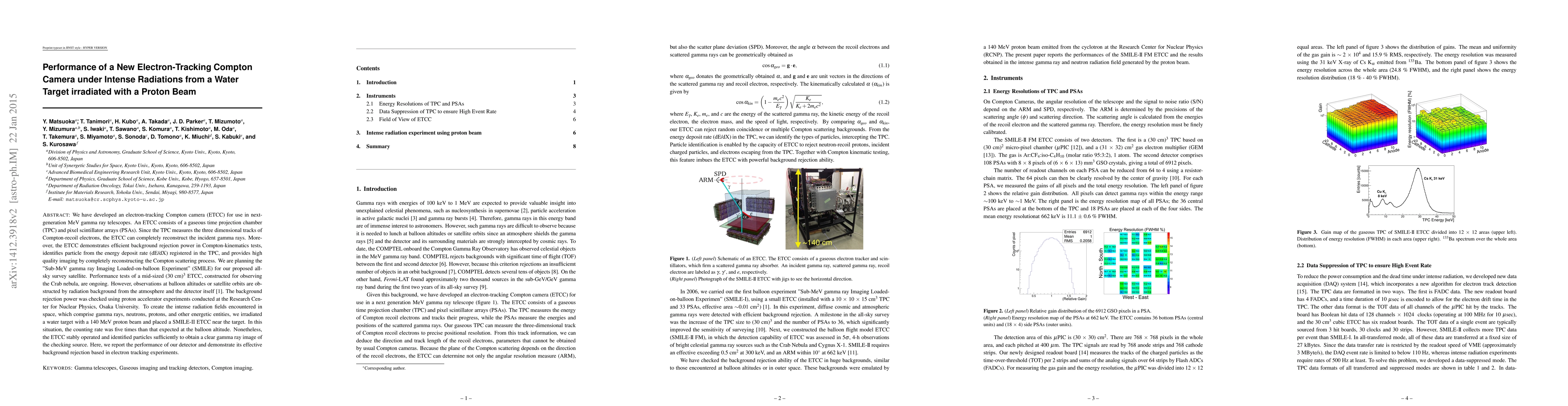 This paper details the performance of a new electron-tracking Compton camera (ETCC) under intense radiation from a water target irradiated with a proton beam. The ETCC, which combines a gaseous time projection chamber and pixel scintillator arrays, successfully identified particles and reconstructed gamma rays, demonstrating effective background rejection and high-quality imaging.