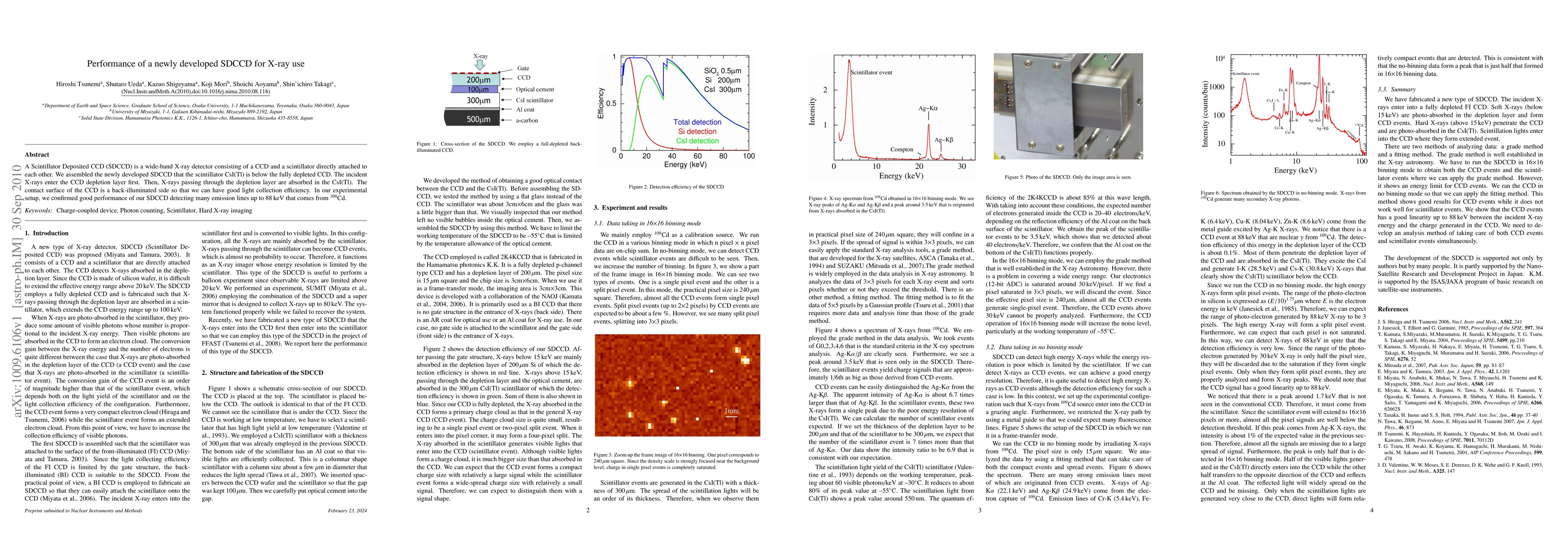 A Scintillator Deposited CCD (SDCCD) is a wide-band X-ray detector consisting of a CCD and a scintillator directly attached to each other. We assembled the newly developed SDCCD that the scintillator CsI(Tl) is below the fully depleted CCD. The incident X-rays enter the CCD depletion layer first. Then, X-rays passing through the depletion layer are absorbed in the CsI(Tl). The contact surface of the CCD is a back-illuminated side so that we can have good light collection efficiency. In our experimental setup, we confirmed good performance of our SDCCD detecting many emission lines up to 88\,keV that comes from $^{109}$Cd.