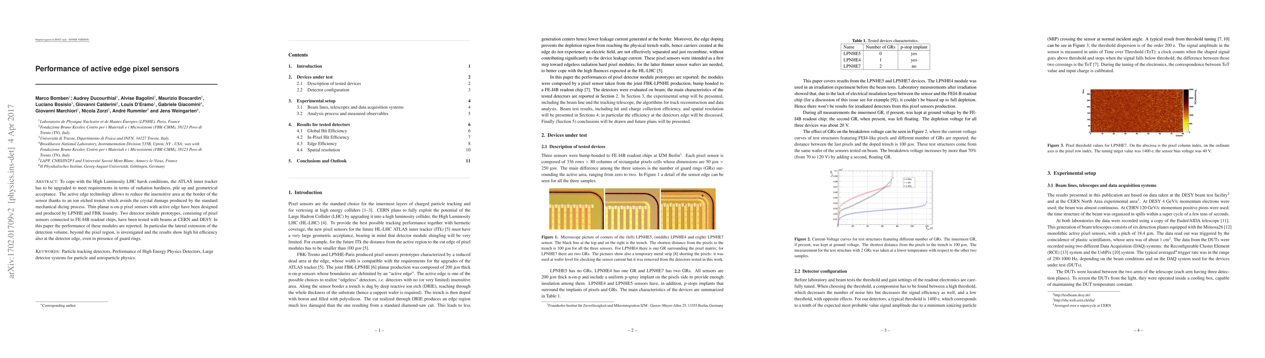 To cope with the High Luminosity LHC harsh conditions, the ATLAS inner tracker has to be upgraded to meet requirements in terms of radiation hardness, pile up and geometrical acceptance. The active edge technology allows to reduce the insensitive area at the border of the sensor thanks to an ion etched trench which avoids the crystal damage produced by the standard mechanical dicing process. Thin planar n-on-p pixel sensors with active edge have been designed and produced by LPNHE and FBK foundry. Two detector module prototypes, consisting of pixel sensors connected to FE-I4B readout chips, have been tested with beams at CERN and DESY. In this paper the performance of these modules are reported. In particular the lateral extension of the detection volume, beyond the pixel region, is investigated and the results show high hit-efficiency also at the detector edge, even in presence of guard rings.