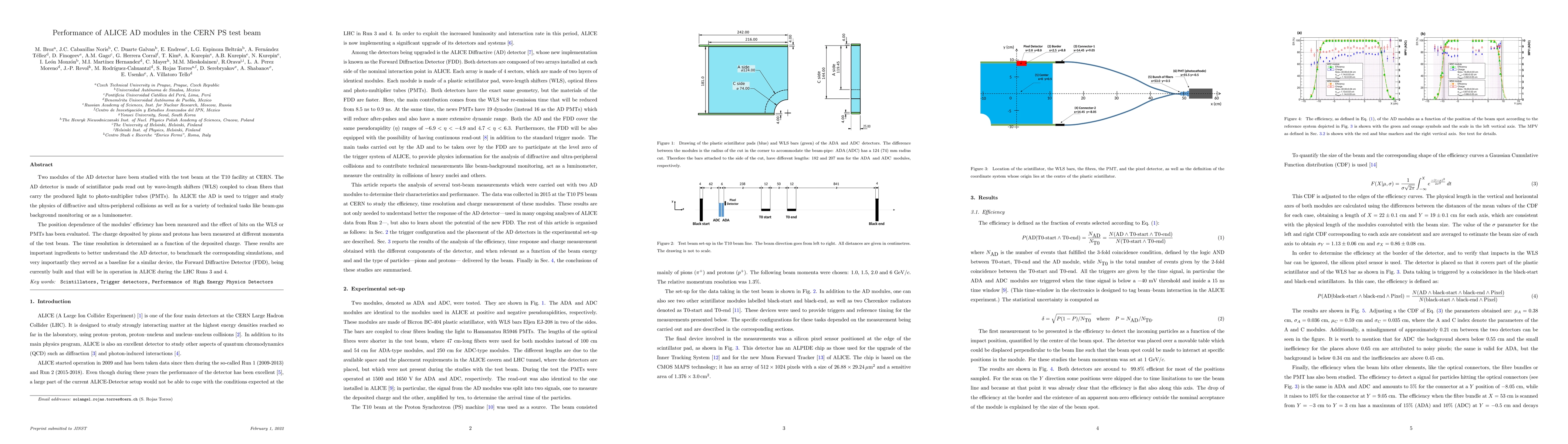Researchers tested two AD detector modules in CERN's test beam, measuring efficiency, charge deposition, and time resolution to improve understanding of the ALICE AD detector, which will aid in studying collisions and other physics in future LHC runs.
