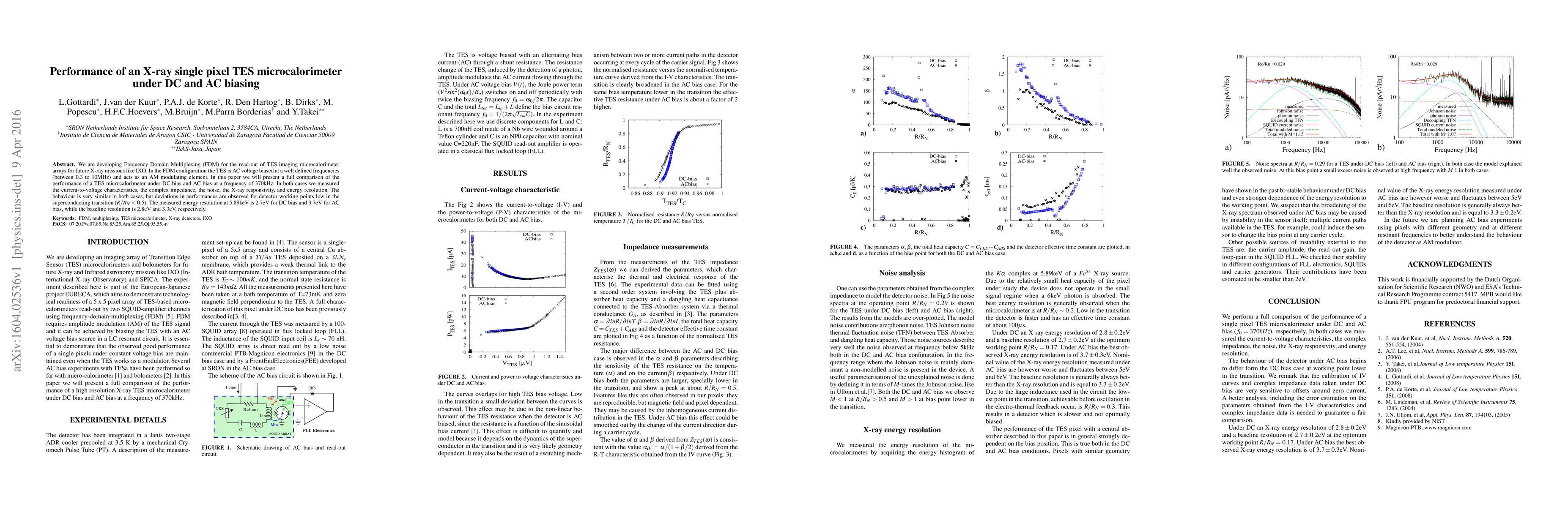 This paper compares the performance of an X-ray TES microcalorimeter under DC and AC biasing, finding similar behavior but noting deviations in low-temperature working points. The energy resolution is 2.7eV for DC bias and 3.7eV for AC bias at 370kHz.