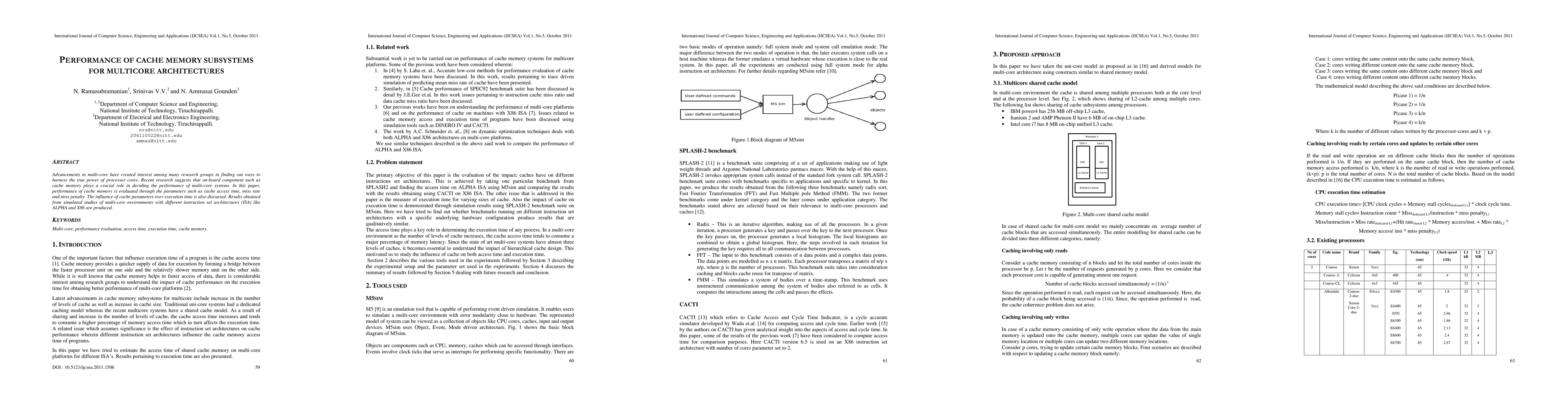 This paper evaluates the performance of cache memory subsystems in multicore architectures, focusing on cache access time, miss rate, and miss penalty. Simulated studies across different ISAs like ALPHA and X86 reveal the impact of cache parameters on overall execution time.