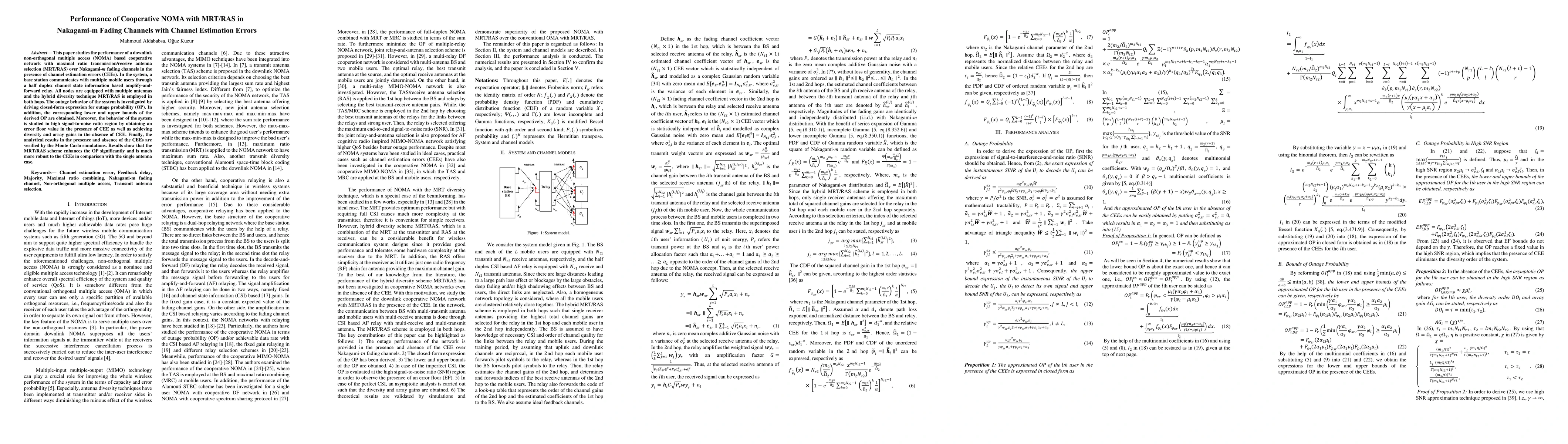 This paper evaluates the performance of a cooperative NOMA network with MRT/RAS over Nakagami-m fading channels under channel estimation errors, deriving closed-form expressions for outage probability and demonstrating enhanced performance and robustness compared to single antenna systems. Analytical results are validated through Monte Carlo simulations.