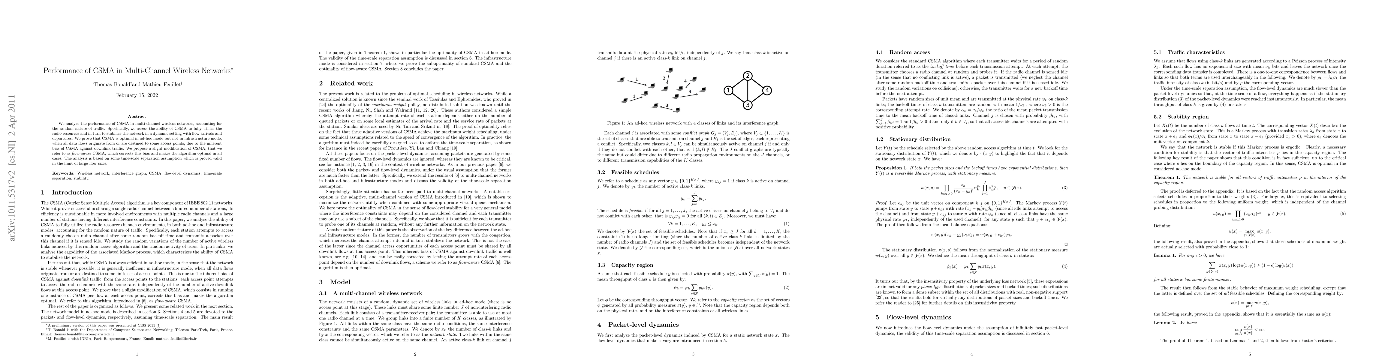 This paper evaluates CSMA's performance in multi-channel wireless networks, finding it optimal in ad-hoc mode but biased against downlink traffic in infrastructure mode. A proposed flow-aware CSMA modification corrects this bias, ensuring optimal performance across all scenarios.