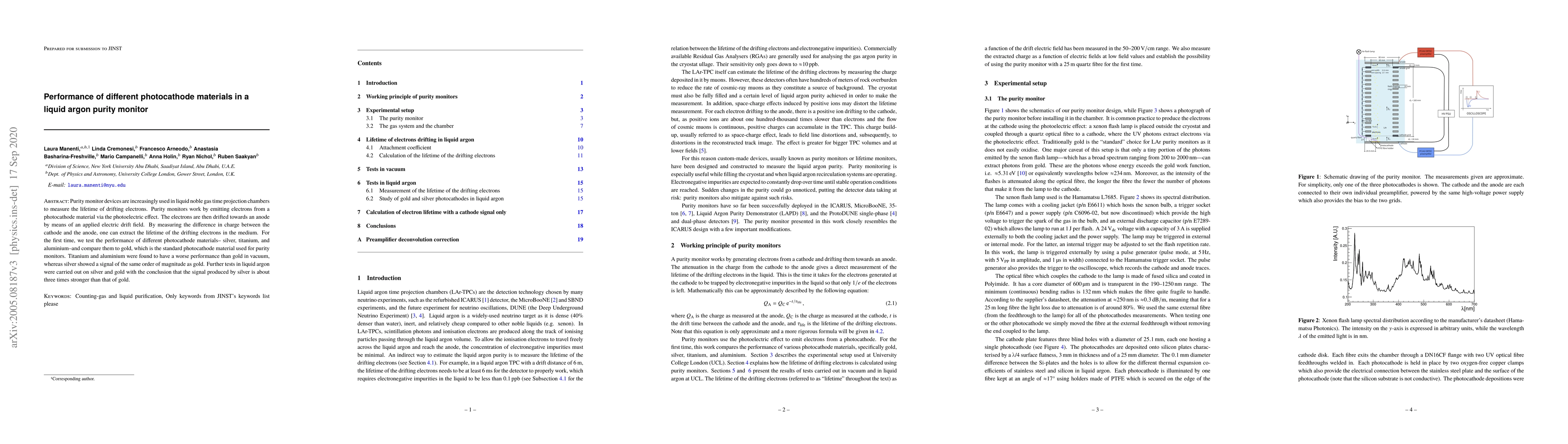 This paper evaluates the performance of various photocathode materials—silver, titanium, and aluminium—in liquid argon purity monitors, comparing them to the standard gold photocathode. Silver showed comparable performance to gold in vacuum, while titanium and aluminium performed worse; silver also produced a three times stronger signal in liquid argon than gold.