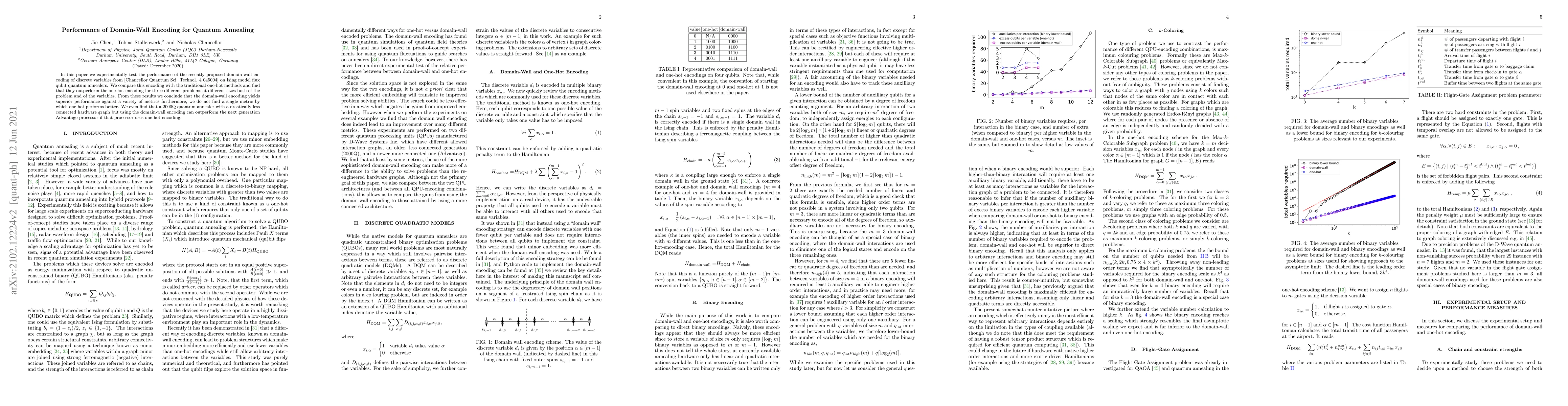In this paper we experimentally test the performance of the recently proposed domain-wall encoding of discrete variables from [Chancellor Quantum Sci. Technol. 4 045004] on Ising model flux qubit quantum annealers. We compare this encoding with the traditional one-hot methods and find that they outperform the one-hot encoding for three different problems at different sizes both of the problem and of the variables. From these results we conclude that the domain-wall encoding yields superior performance against a variety of metrics furthermore, we do not find a single metric by which one hot performs better. We even find that a 2000Q quantum annealer with a drastically less connected hardware graph but using the domain-wall encoding can outperform the next generation Advantage processor if that processor uses one-hot encoding.