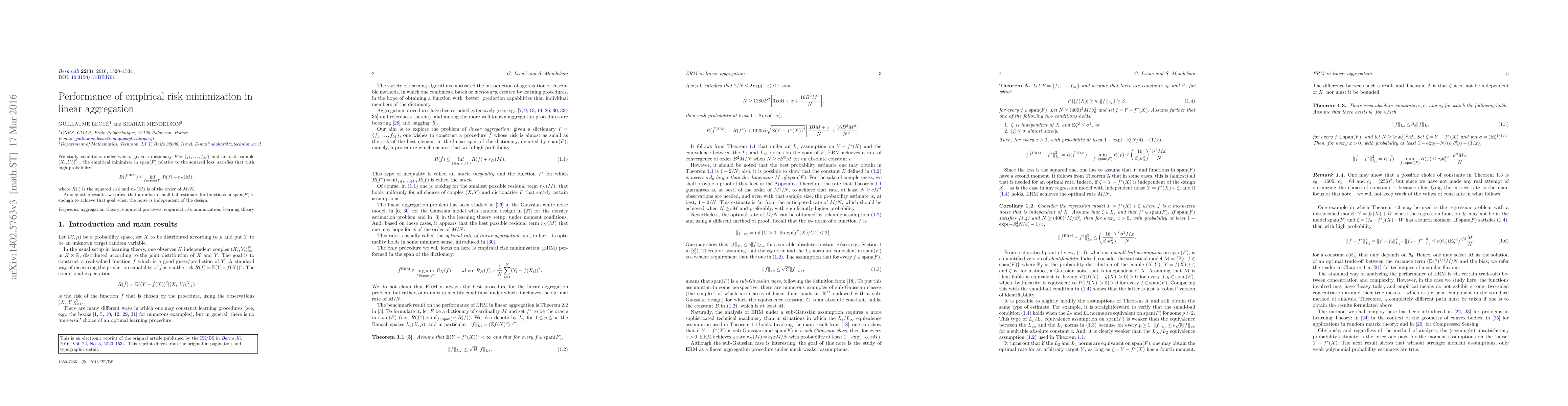 This paper investigates when empirical risk minimization in linear aggregation achieves optimal performance with high probability, proving that a uniform small-ball estimate for functions is sufficient under independent noise conditions.