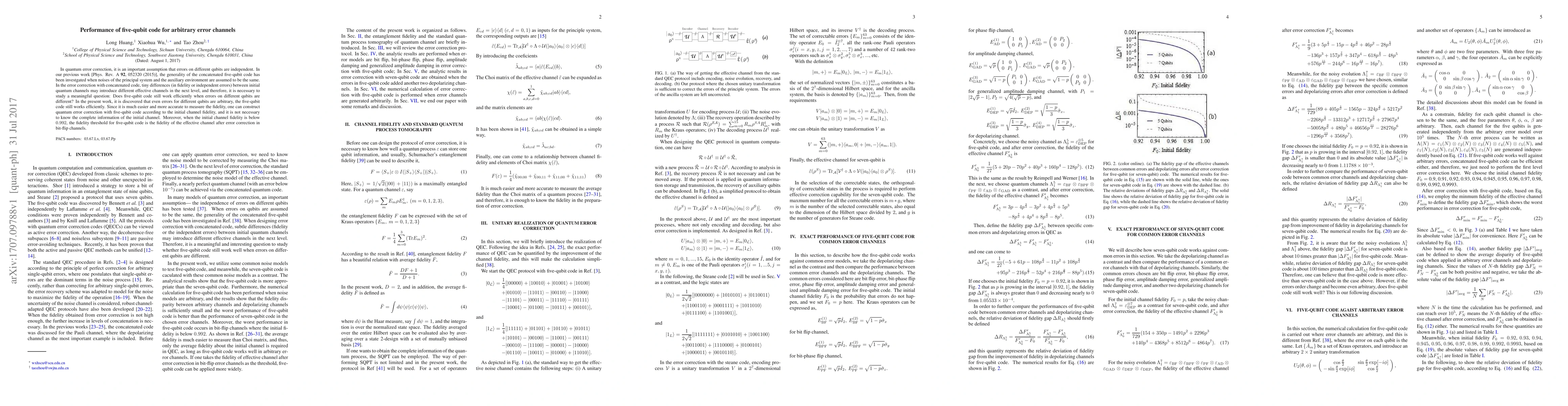 This paper investigates the performance of a five-qubit code under arbitrary error channels, demonstrating its efficiency even when errors on different qubits vary. The study concludes that the code remains effective without needing complete initial channel information, primarily relying on the fidelity measurement.