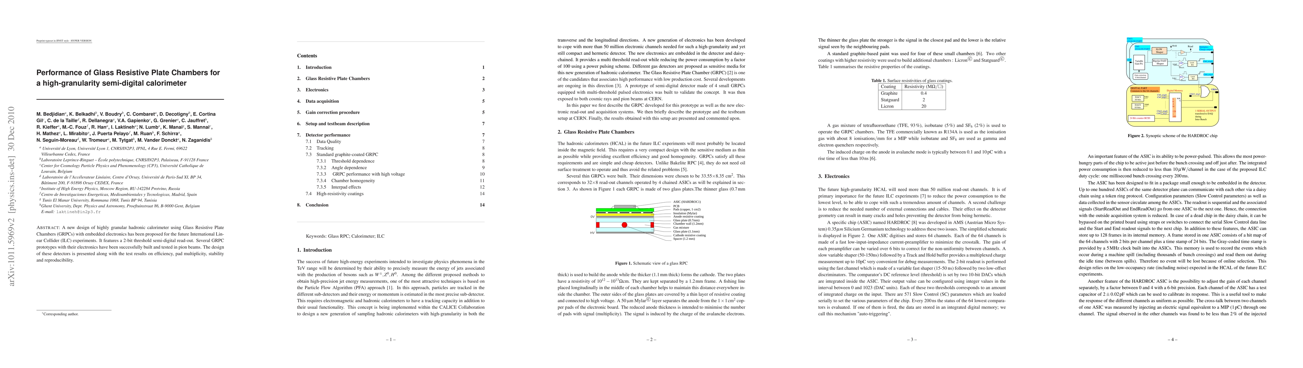 This paper proposes a new design for a highly granular hadronic calorimeter using Glass Resistive Plate Chambers (GRPCs) for future International Linear Collider (ILC) experiments, featuring a 2-bit semi-digital read-out. Prototypes were tested in pion beams, demonstrating efficiency, pad multiplicity, stability, and reproducibility.