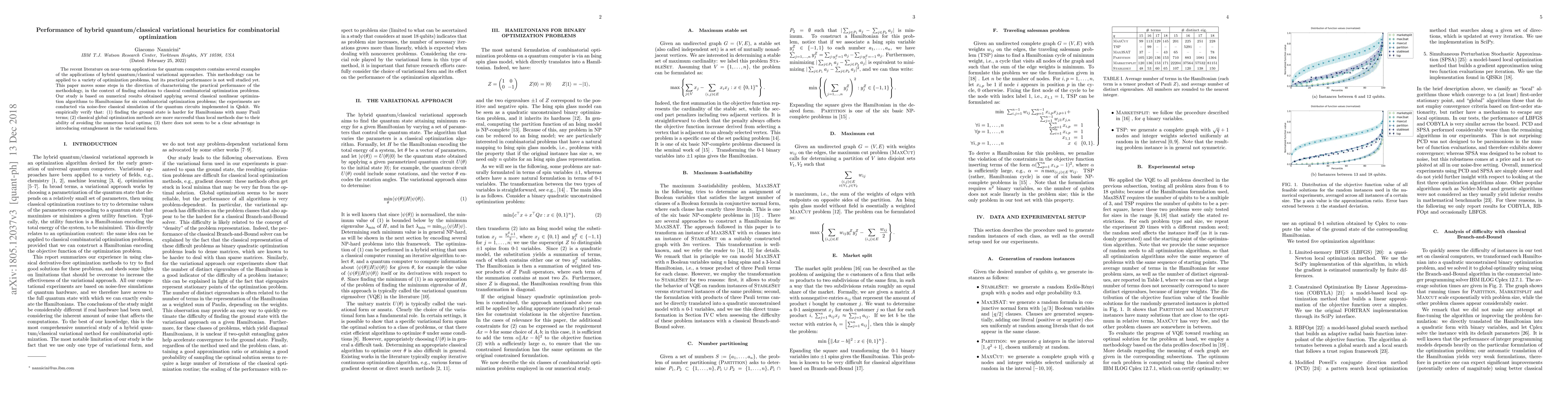 The paper presents a comparative analysis of classical optimization algorithms applied to Hamiltonians for various combinatorial optimization problems, providing insights into the performance of hybrid quantum/classical methods.