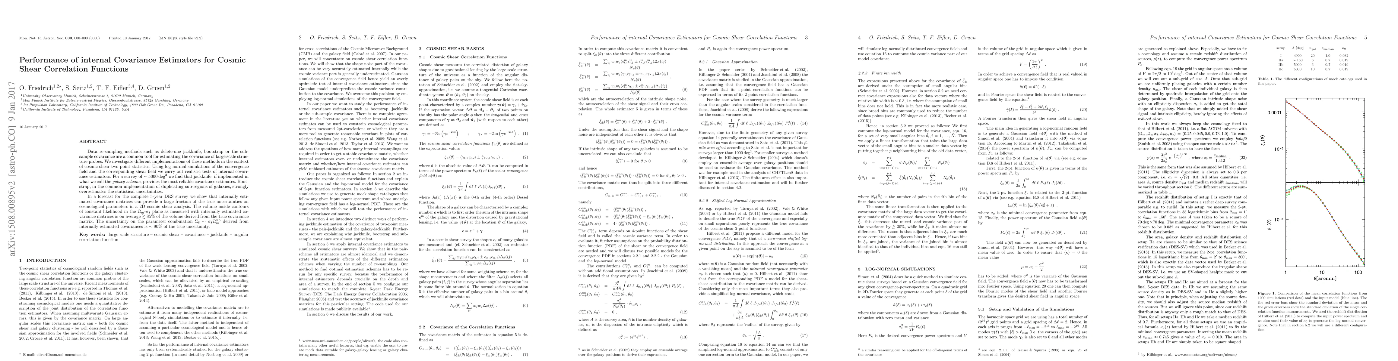 Data re-sampling methods such as the delete-one jackknife are a common tool for estimating the covariance of large scale structure probes. In this paper we investigate the concepts of internal covariance estimation in the context of cosmic shear two-point statistics. We demonstrate how to use log-normal simulations of the convergence field and the corresponding shear field to carry out realistic tests of internal covariance estimators and find that most estimators such as jackknife or sub-sample covariance can reach a satisfactory compromise between bias and variance of the estimated covariance. In a forecast for the complete, 5-year DES survey we show that internally estimated covariance matrices can provide a large fraction of the true uncertainties on cosmological parameters in a 2D cosmic shear analysis. The volume inside contours of constant likelihood in the $\Omega_m$-$\sigma_8$ plane as measured with internally estimated covariance matrices is on average $\gtrsim 85\%$ of the volume derived from the true covariance matrix. The uncertainty on the parameter combination $\Sigma_8 \sim \sigma_8 \Omega_m^{0.5}$ derived from internally estimated covariances is $\sim 90\%$ of the true uncertainty.