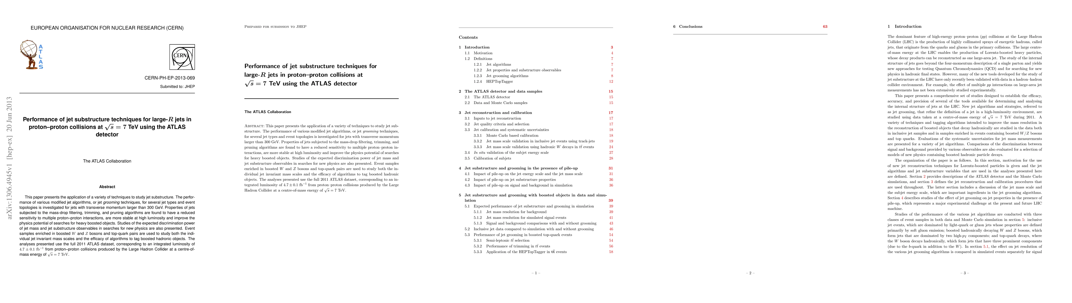 This paper evaluates various jet grooming techniques for large-R jets in proton-proton collisions at 7 TeV using the ATLAS detector, finding improved stability and reduced sensitivity to multiple interactions, which enhances searches for heavy boosted objects. The study also assesses the discrimination power of jet substructure observables in new physics searches using the full 2011 ATLAS dataset.