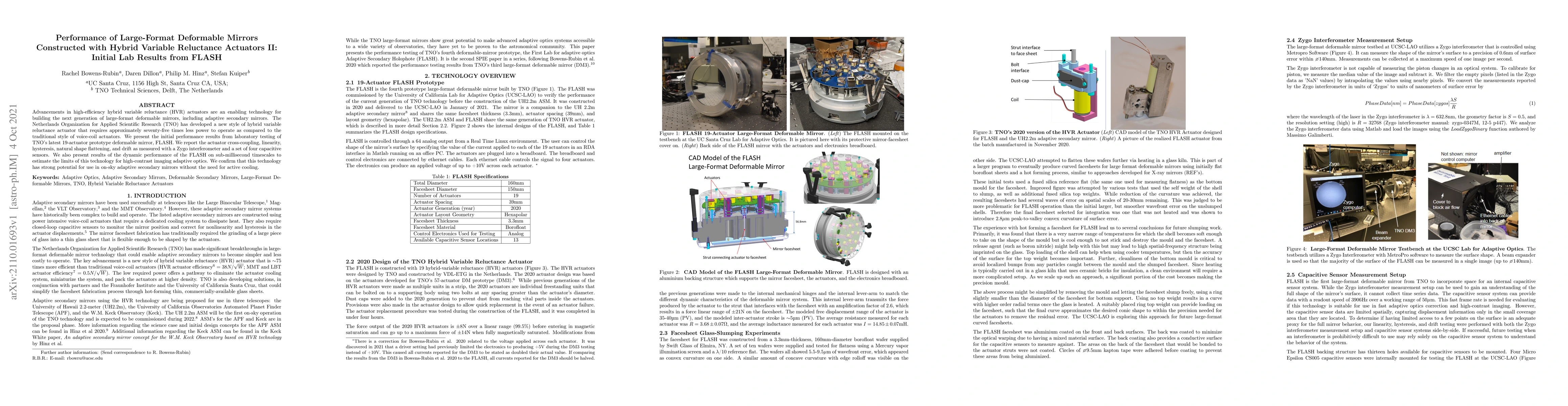 Advancements in high-efficiency hybrid variable reluctance (HVR) actuators are an enabling technology for building the next generation of large-format deformable mirrors, including adaptive secondary mirrors. The Netherlands Organization for Applied Scientific Research (TNO) has developed a new style of hybrid variable reluctance actuator that requires approximately seventy-five times less power to operate as compared to the traditional style of voice-coil actuators. We present the initial performance results from laboratory testing of TNO's latest 19-actuator prototype deformable mirror, FLASH. We report the actuator cross-coupling, linearity, hysteresis, natural shape flattening, and drift as measured with a Zygo interferometer and a set of four capacitive sensors. We also present results of the dynamic performance of the FLASH on sub-millisecond timescales to estimate the limits of this technology for high-contrast imaging adaptive optics. We confirm that this technology has strong potential for use in on-sky adaptive secondary mirrors without the need for active cooling.