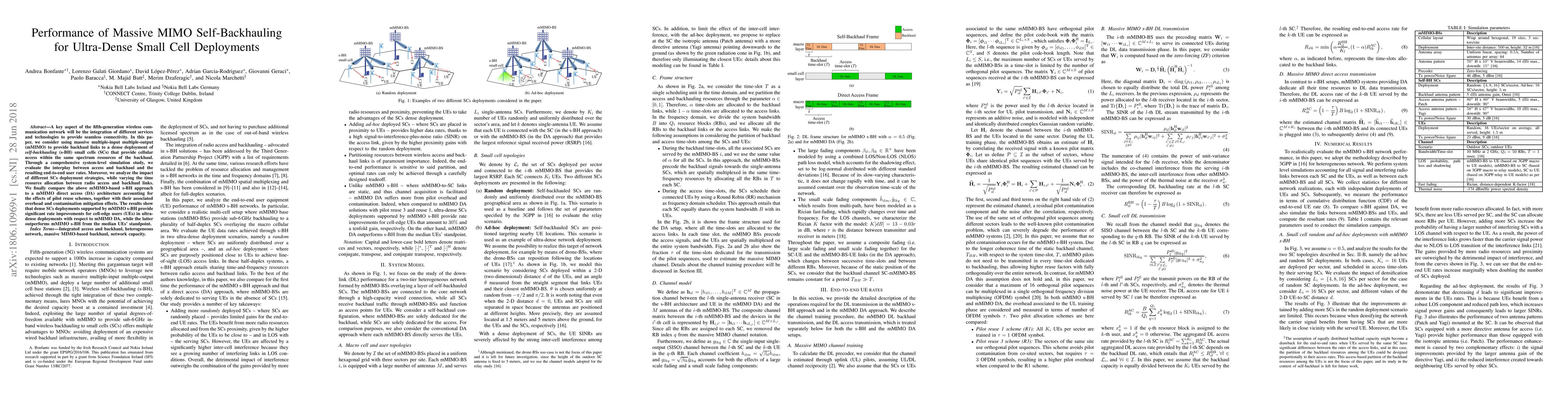 This paper evaluates the performance of massive MIMO self-backhauling for dense small cell deployments, showing significant rate improvements for cell-edge users compared to direct access, while direct access outperforms for median users. The study also analyzes various deployment strategies and compares them with direct access architectures.